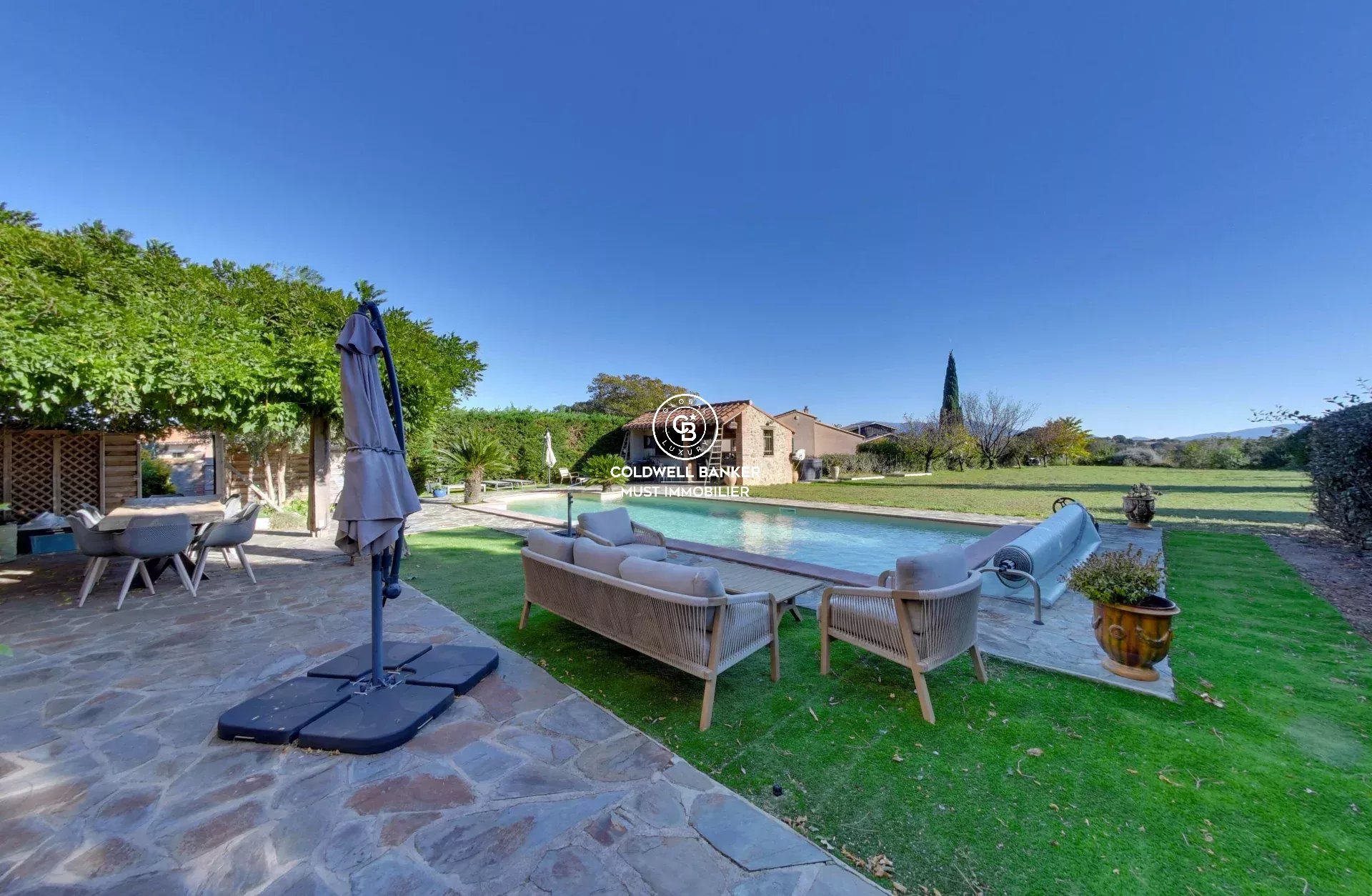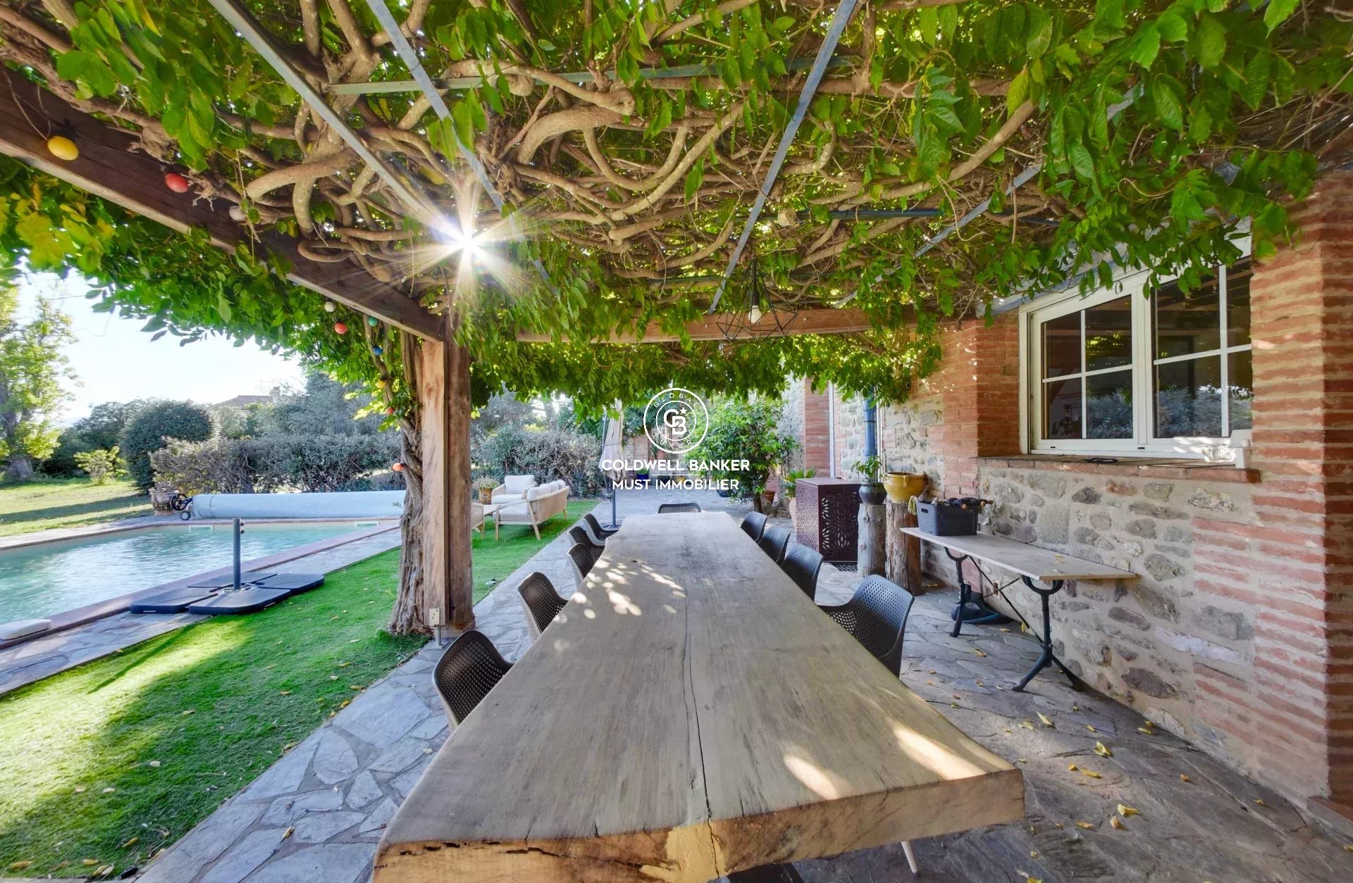 À l’extérieur, piscine 10×5, terrasses, pergola, cuisine d'été et triple garage viennent parfaire les prestations. Pour votre confort, climatisation gainable et panneaux photovoltaïques.