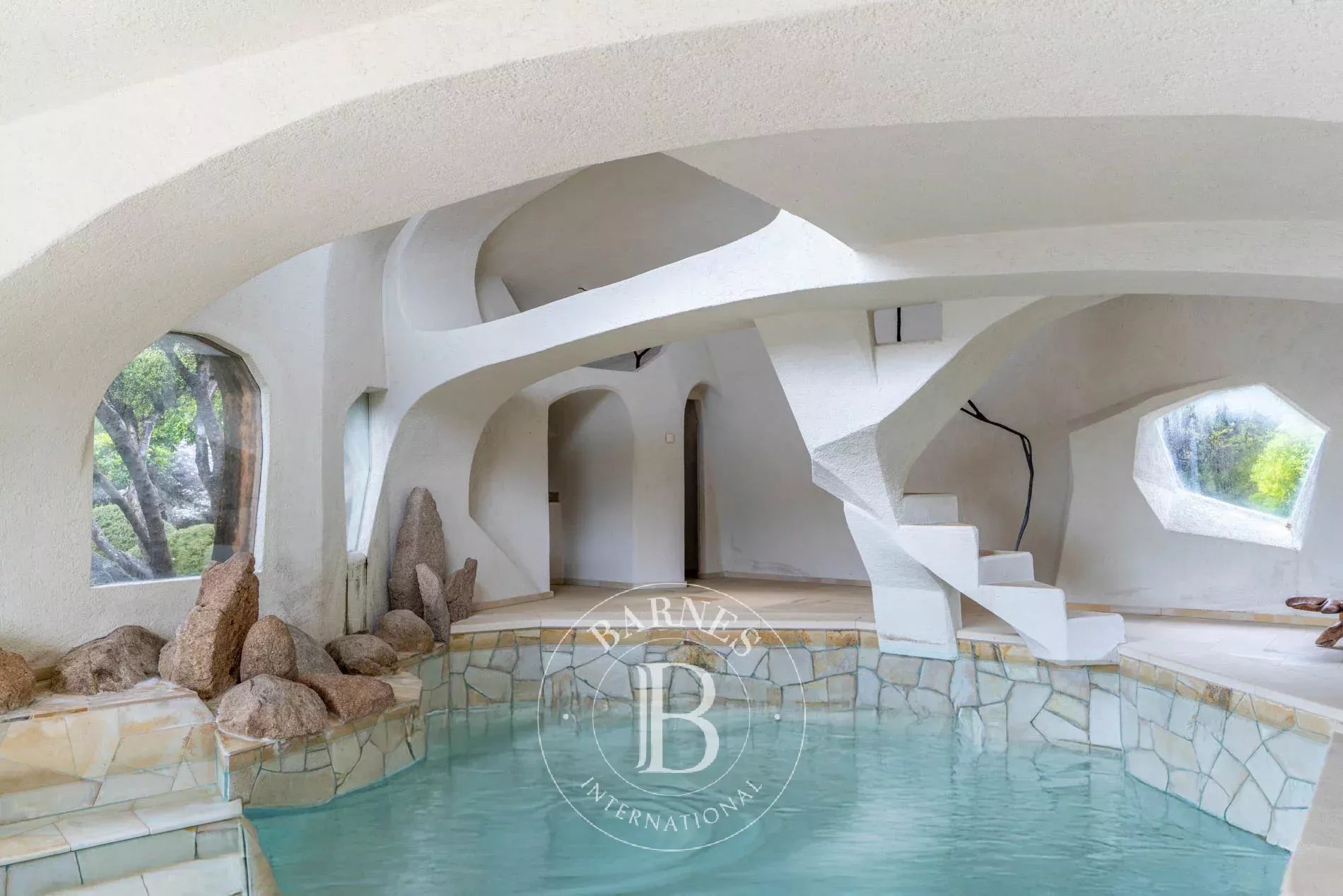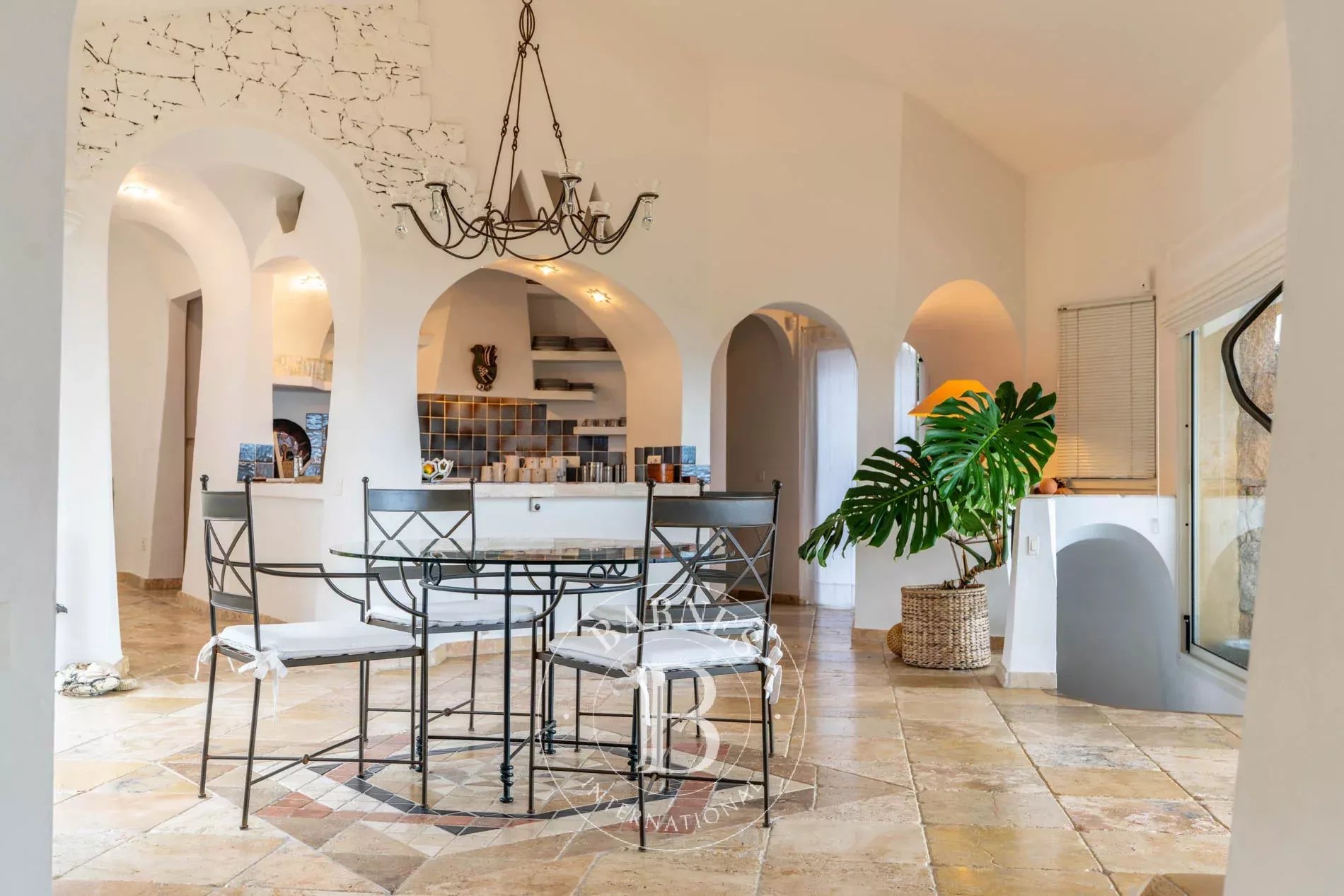 Édifiée sur un parc paysager d’environ 6 993 m², la propriété offre un cadre paisible, à proximité de la plage de Vardiola et des villages de Pinarello et Sainte-Lucie de Porto-Vecchio.