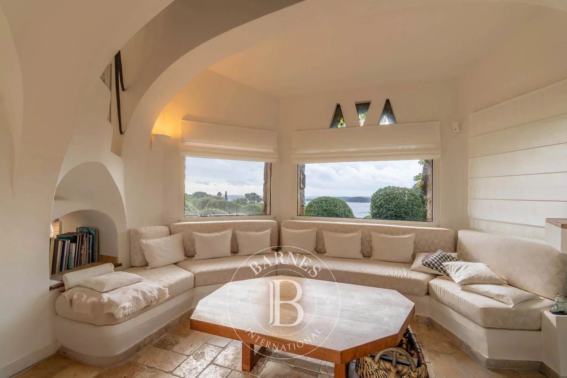 Nichée entre mer et maquis, cette villa d’architecte aux lignes méditerranéennes profite d’un panorama exceptionnel sur la mer.