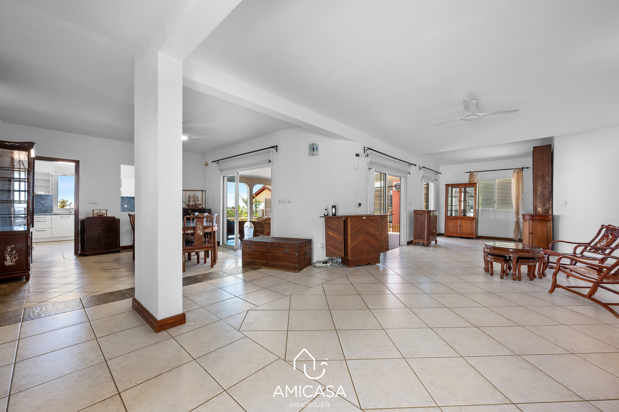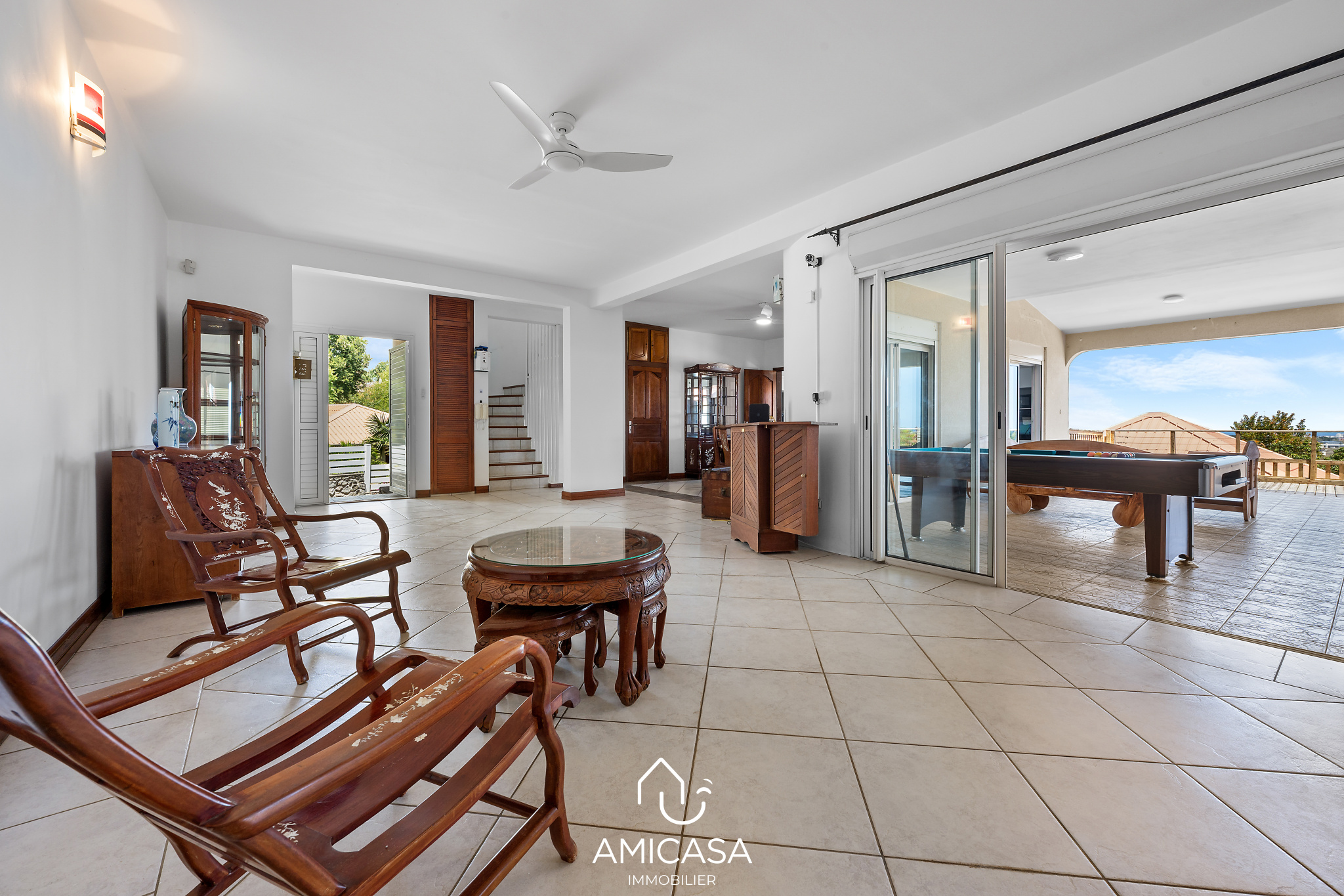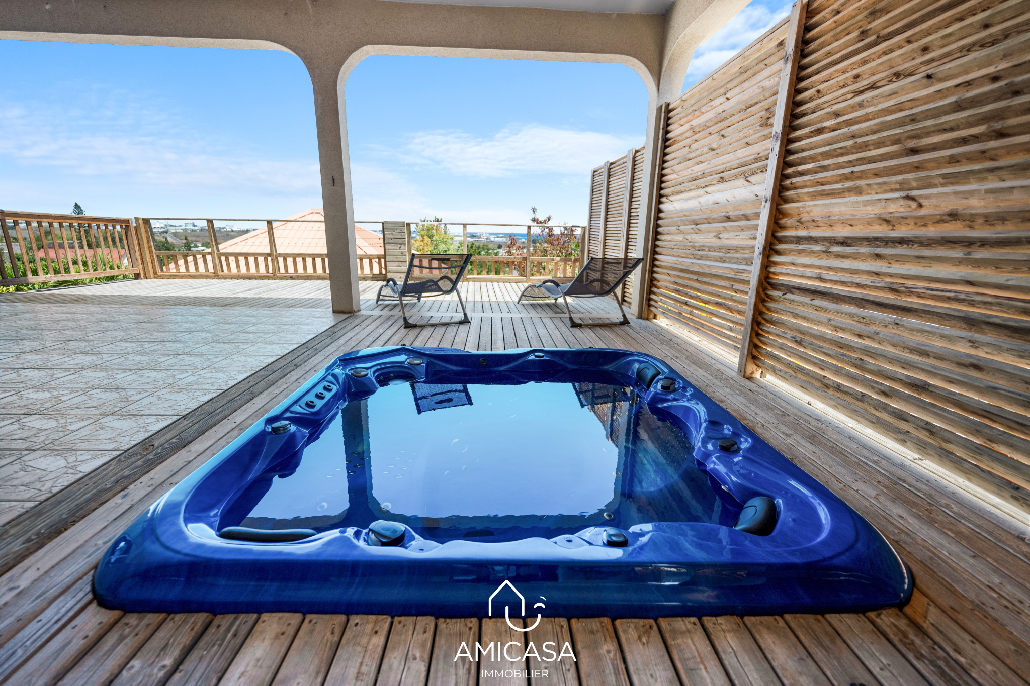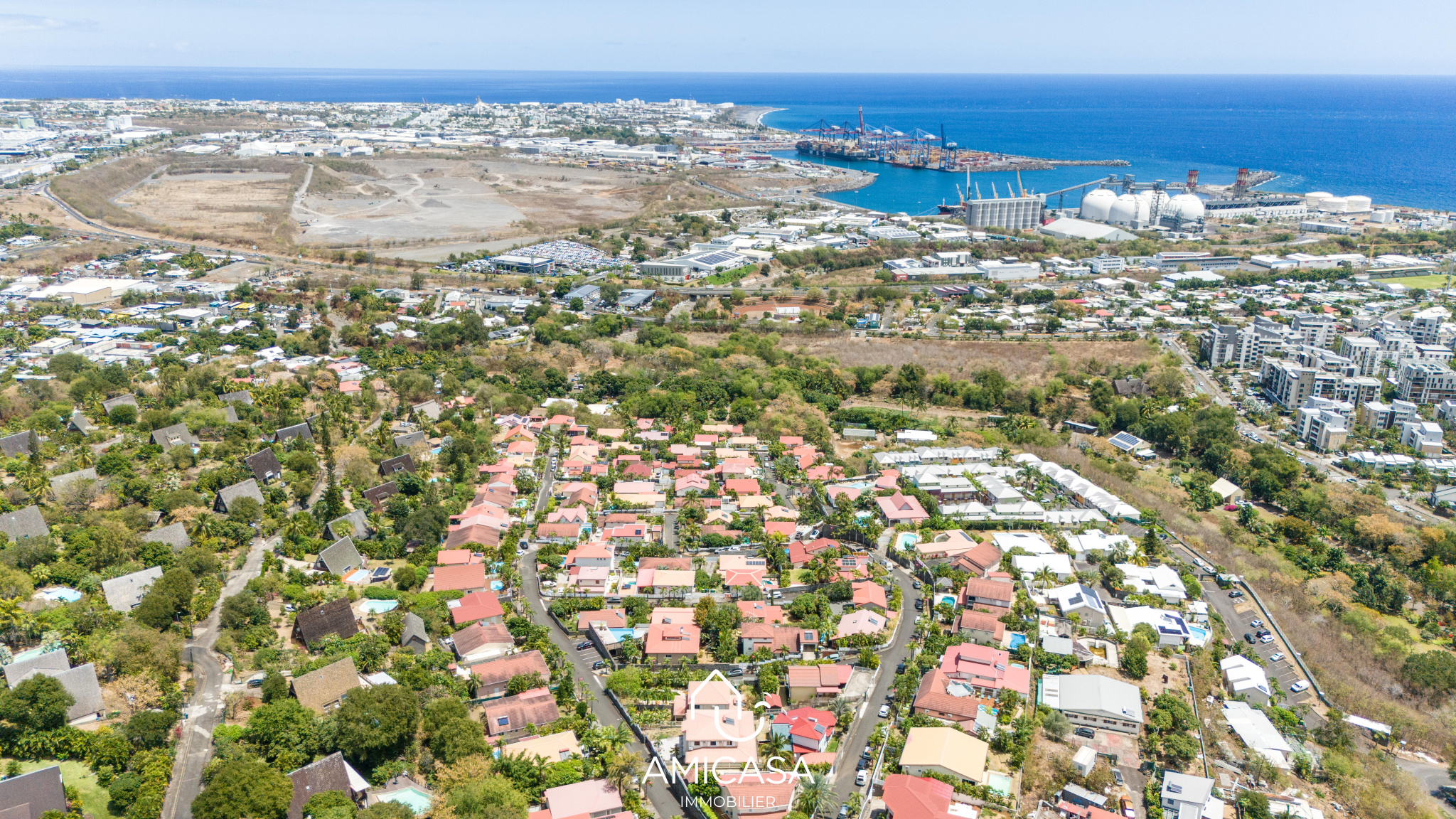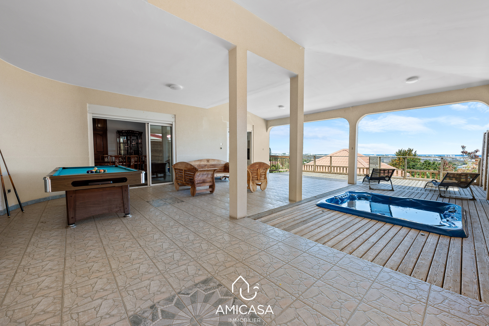 AMICASA IMMOBILIER vous propose à la vente, dans une résidence privée et sécurisée de La Possession, cette spacieuse maison de 202 m2 habitables, offrant une vue mer panoramique et un jacuzzi privatif.