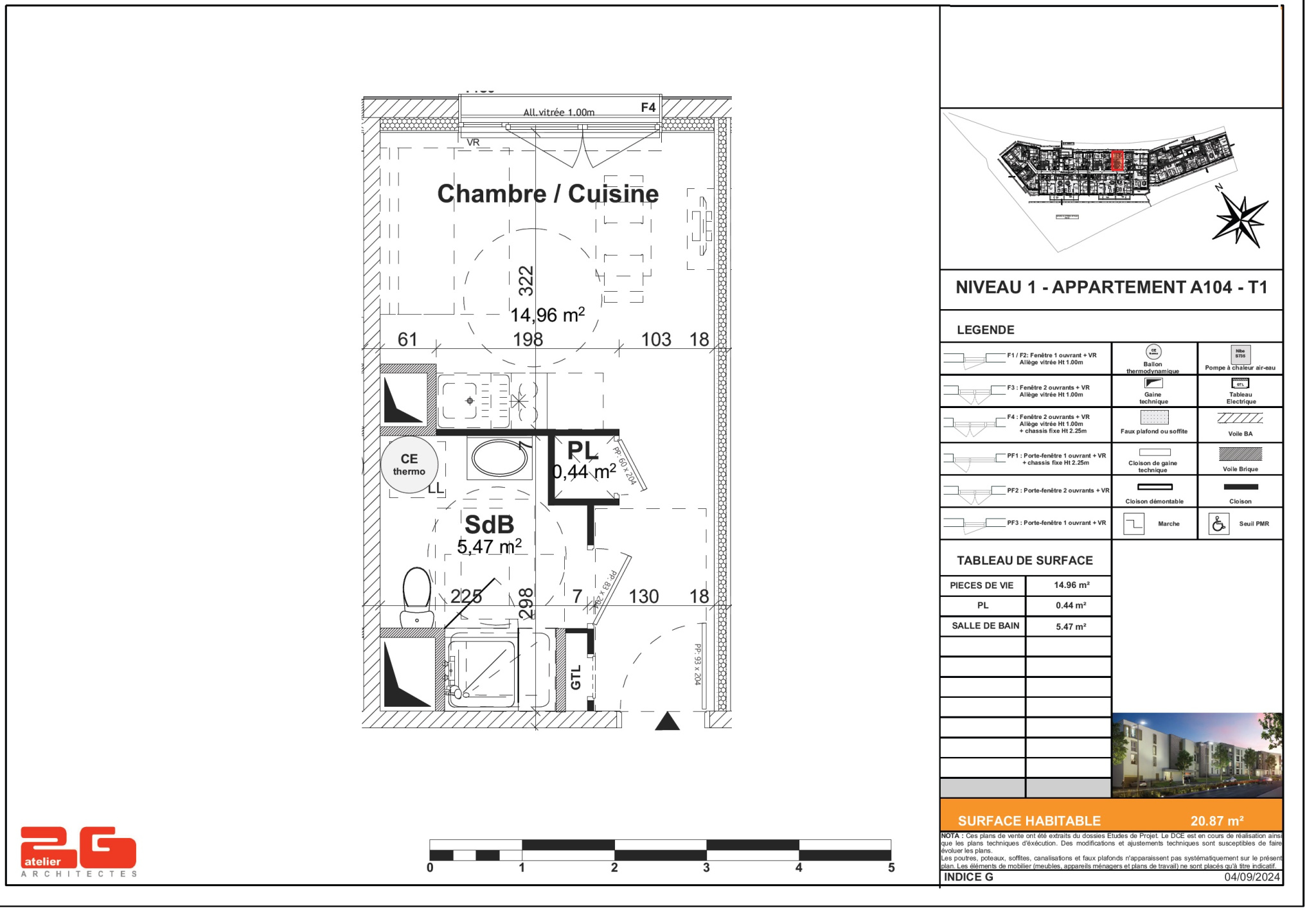 Ici, nous vous présentons un appartement de type Studio de 20m2 au 1er étage .