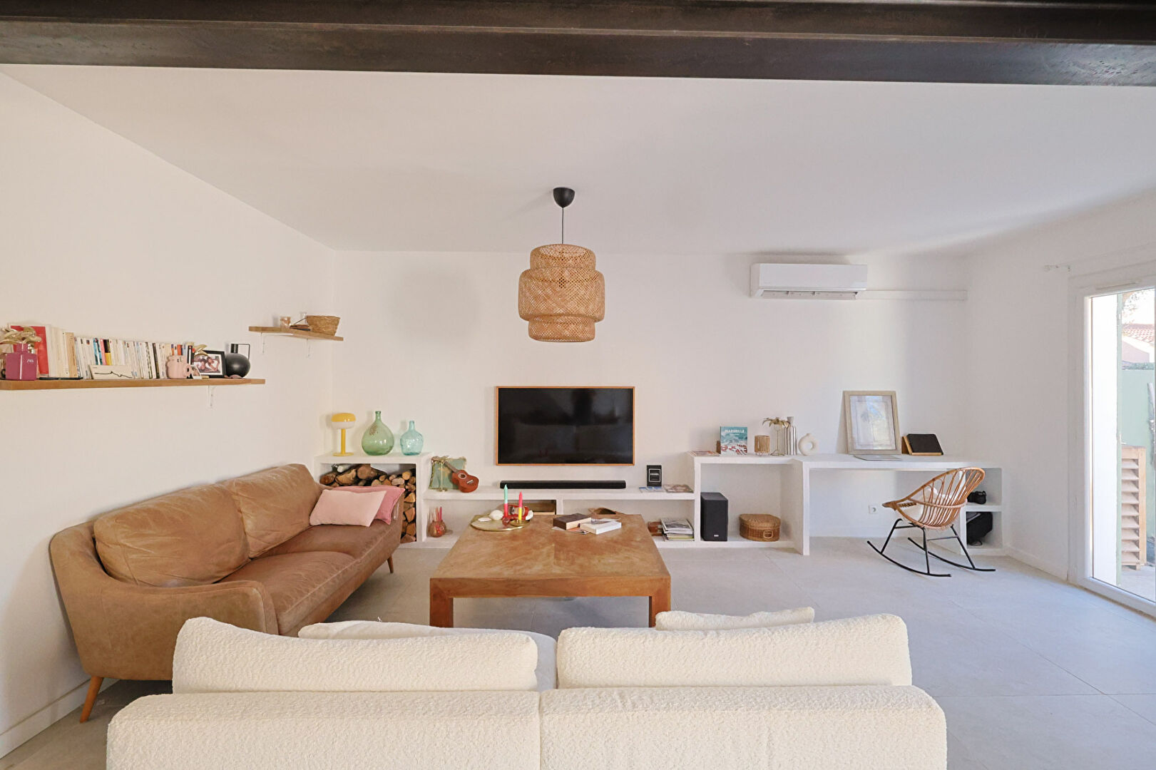 À l'extérieur, une terrasse en bois exotique prolonge la maison vers le jardin, dans une atmosphère apaisée. Le tout est complété par un stationnement privatif, une climatisation réversible et un poêle à bois apportant chaleur et authenticité.
