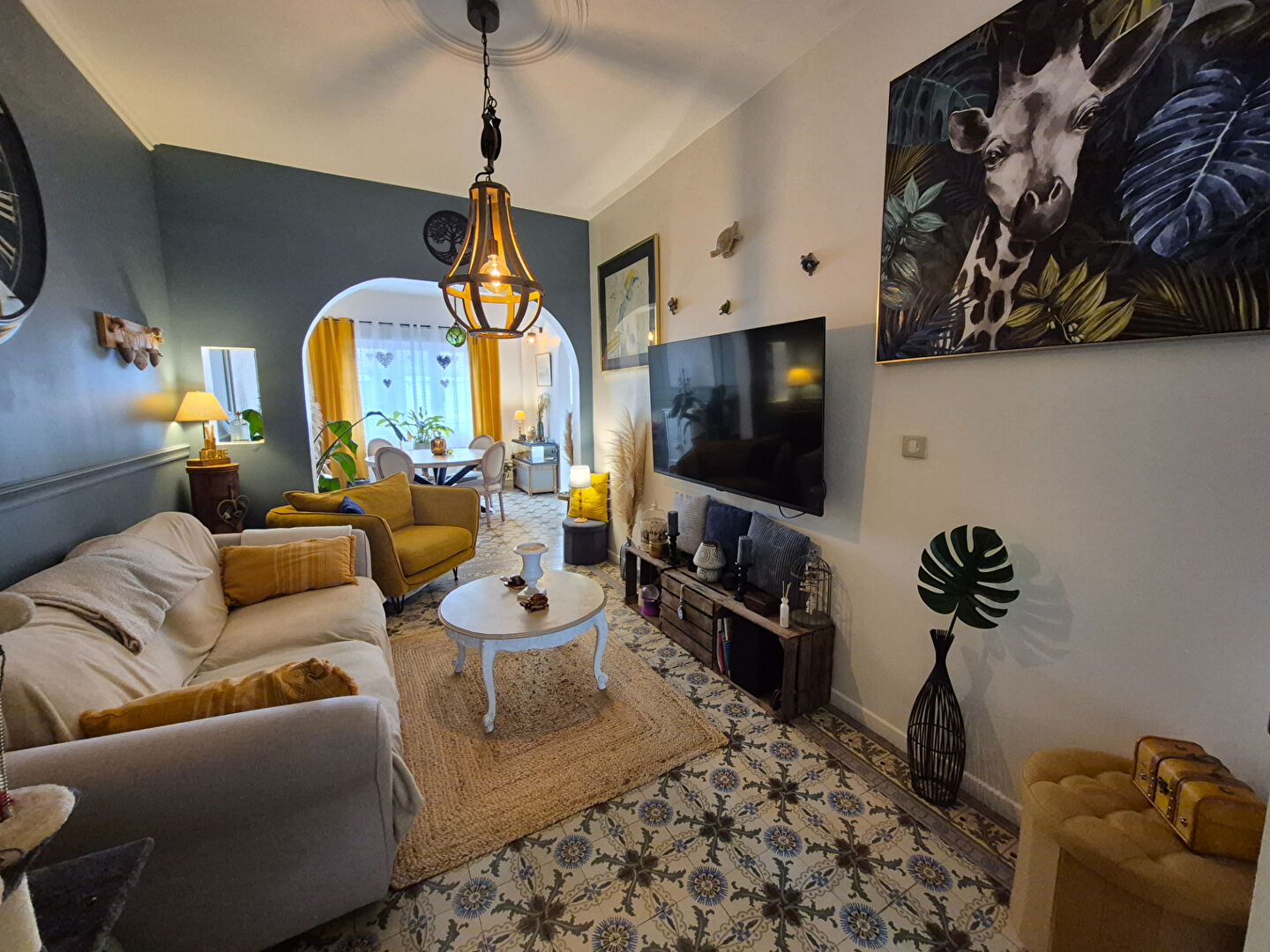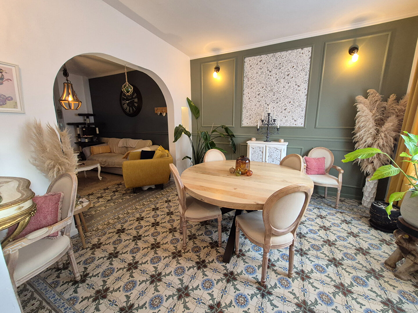 L'entrée révèle le cachet de la maison avec ses carreaux de ciment authentiques. Elle s'ouvre sur un salon, salle à manger spacieux et traversant, profitant d'une grande luminosité.