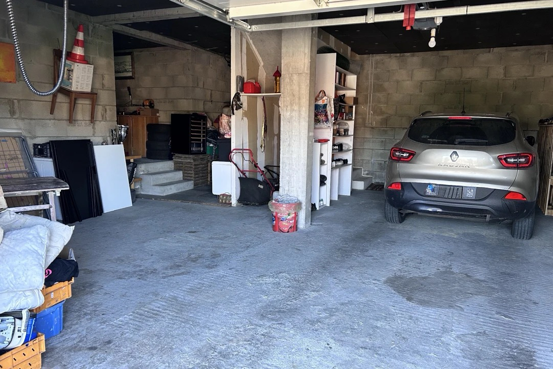 En sous-sol, un vaste espace permet de stationner plusieurs véhicules et de bénéficier de nombreux rangements ou d'un atelier.