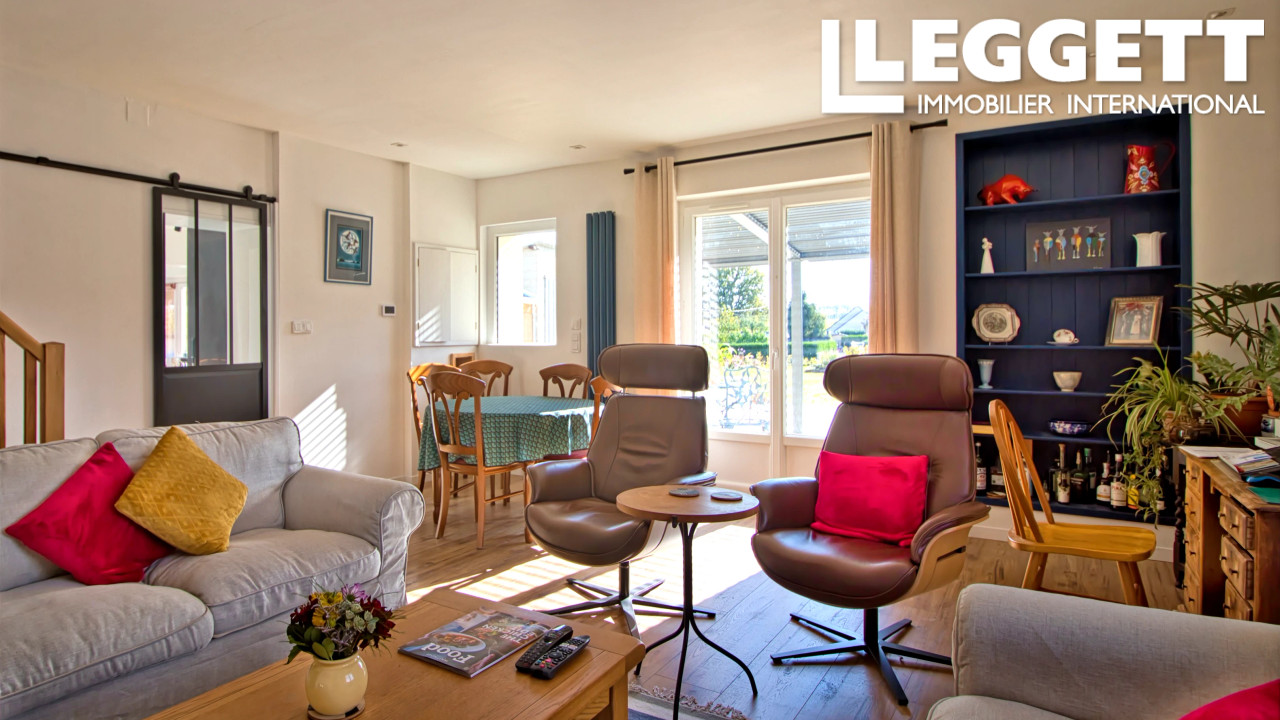 La maison principale, lumineuse et confortable, est prête à habiter et comprend une grande cuisine avec bar ainsi qu'un séjour ouvrant sur une terrasse ensoleillée avec pergola bioclimatique. Une chambre et une salle d'eau sont présentes à chaque niveau, tandis qu'une annexe récemment aménagée offre une chambre ou un bureau supplémentaire avec buanderie.
