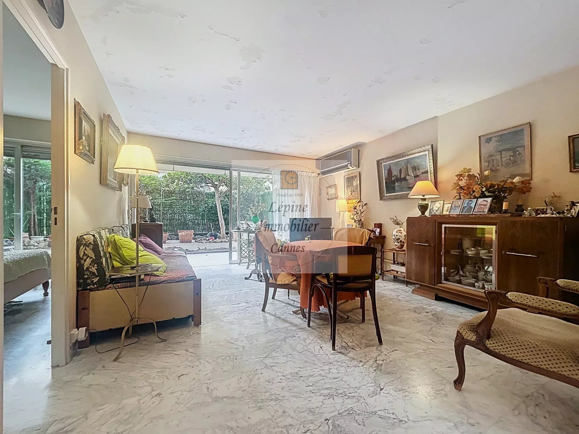 Situé au coeur du quartier prisé du CANNES PALM BEACH, venez découvrir cet appartement de 2 pièces en rez-de-jardin. Le bien d'une surface de 53,57m² ainsi qu'une terrasse/jardin de 25m², offre un fort potentiel. Idéalement localisé, à deux pas des commerces, de la Croisette, des plages, cet appartement, orienté Ouest, nécessite une rénovation avec une possibilité d'en faire un petit 3 pièces. L'acquisition d'un parking privatif en sus du prix est possible.