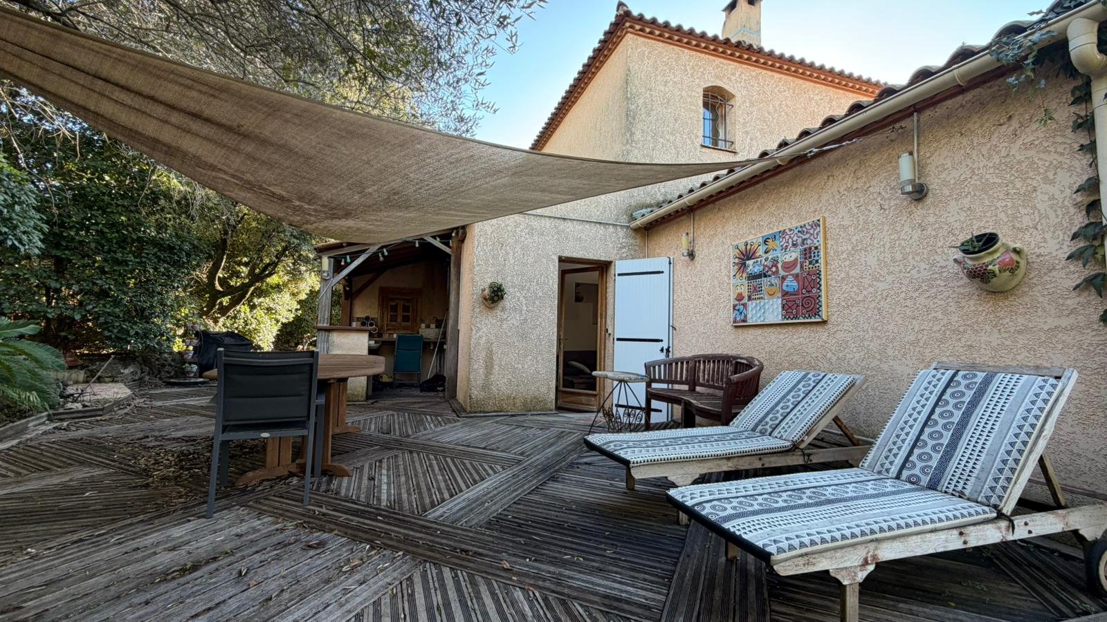 Nichée au fond d'une impasse et entourée de verdure, cette superbe villa d'architecte de 154 m² offre un cadre de vie paisible au c?ur d'un jardin méditerranéen intime et sans vis-à-vis.
