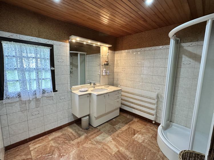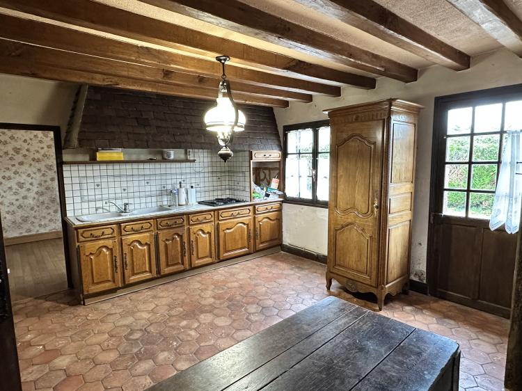 RDC: Entrée, wc, salle d'eau, 2 chambres, cuisine, séjour/salon avec cheminée.