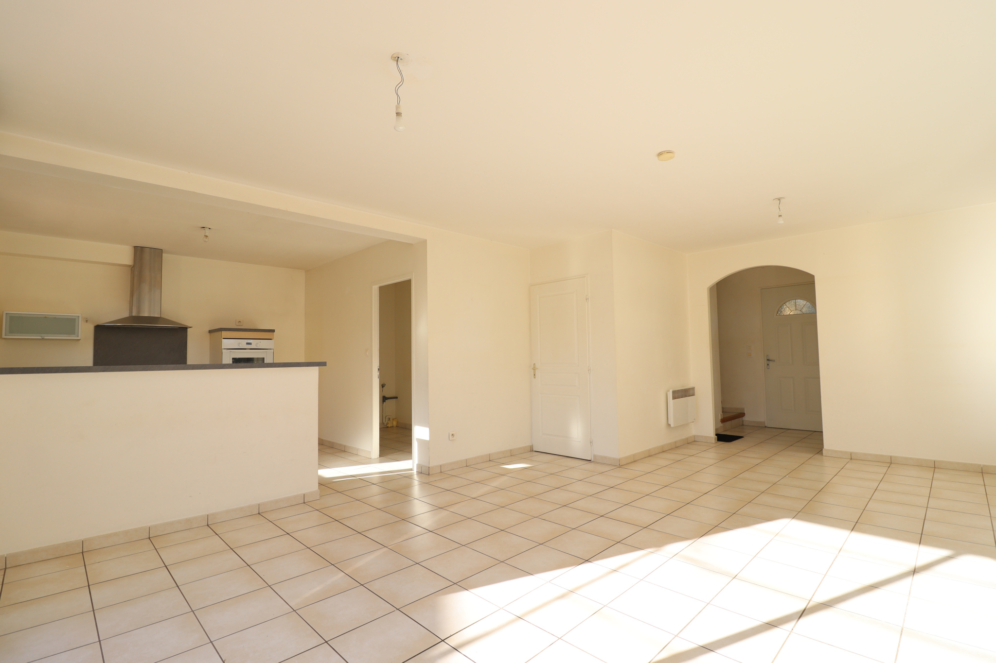 Elle s'agence de la façon suivante : Au rez-de-chaussée un porche d'entrée, un hall avec placard, un toilette, un séjour lumineux avec cuisine ouverte (plus de 38 m2), un cellier et un garage attenant de 15 m2.