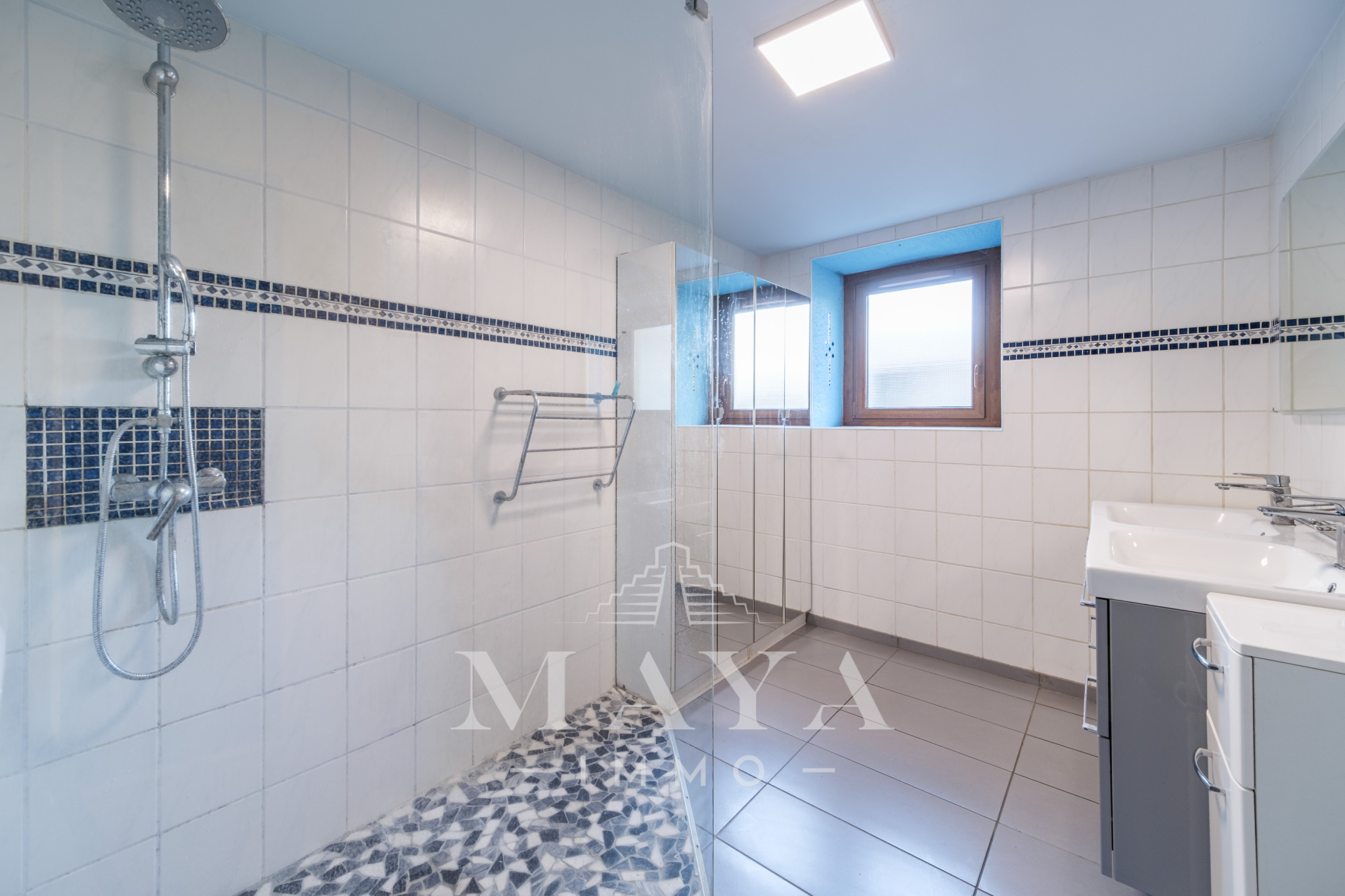 Au rez-de-chaussée, une entrée, un salon/séjour avec un Kachelofen, une cuisine équipée récente, une salle d'eau avec douche à l'italienne, un WC, une buanderie/cellier et une véranda.