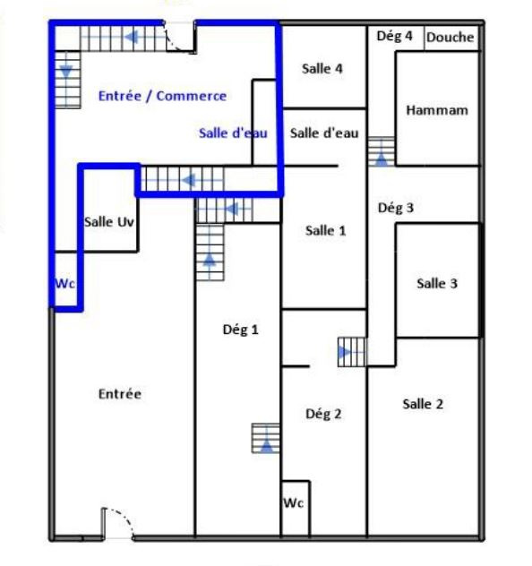 Ancien institut de beauté, il bénéficie de plusieurs espaces sur différents niveaux ainsi qu'un second espace aménagé en studio de 23m2 pour une salle de repos.