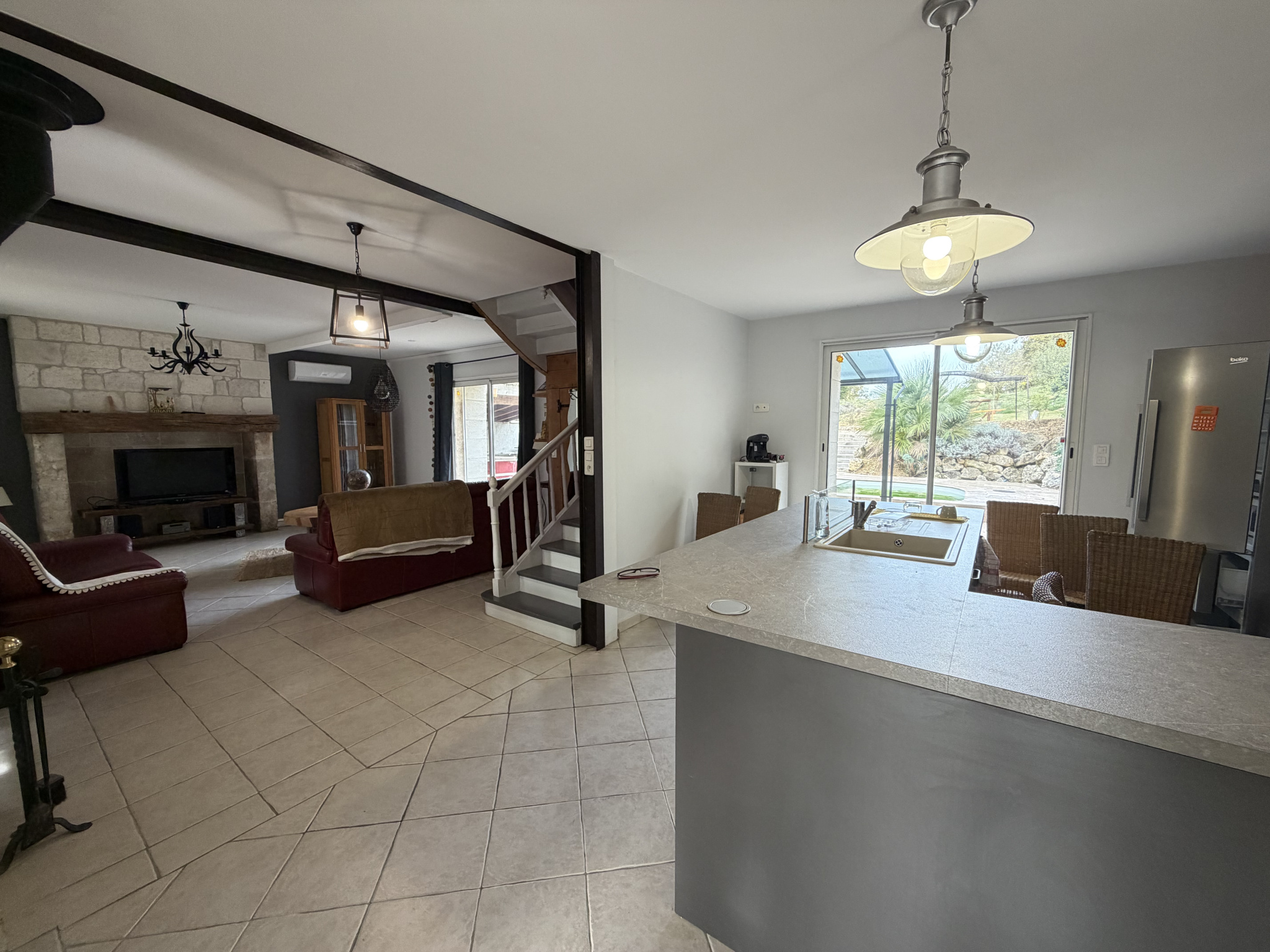 Cette maison principale en pierres vous invite à découvrir son confort, elle comprend une pièce de vie de plus de 80m2, quatre chambres à l'étage avec une vue sur la piscine.