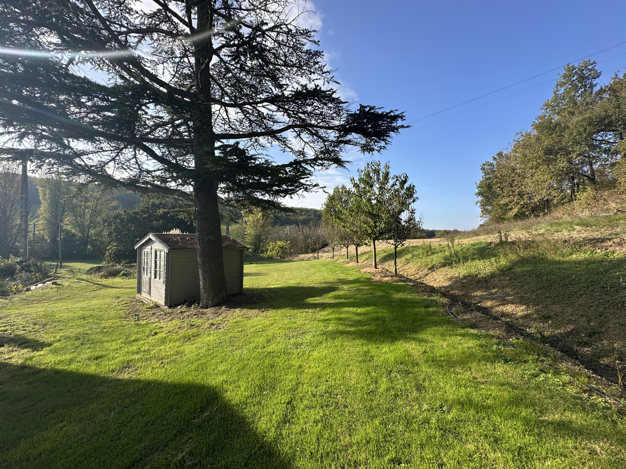 Grand garage et terrain arboré d'environ 2 000m2 (possibilité d'acquérir plus de terrain), parking de plusieurs voitures.