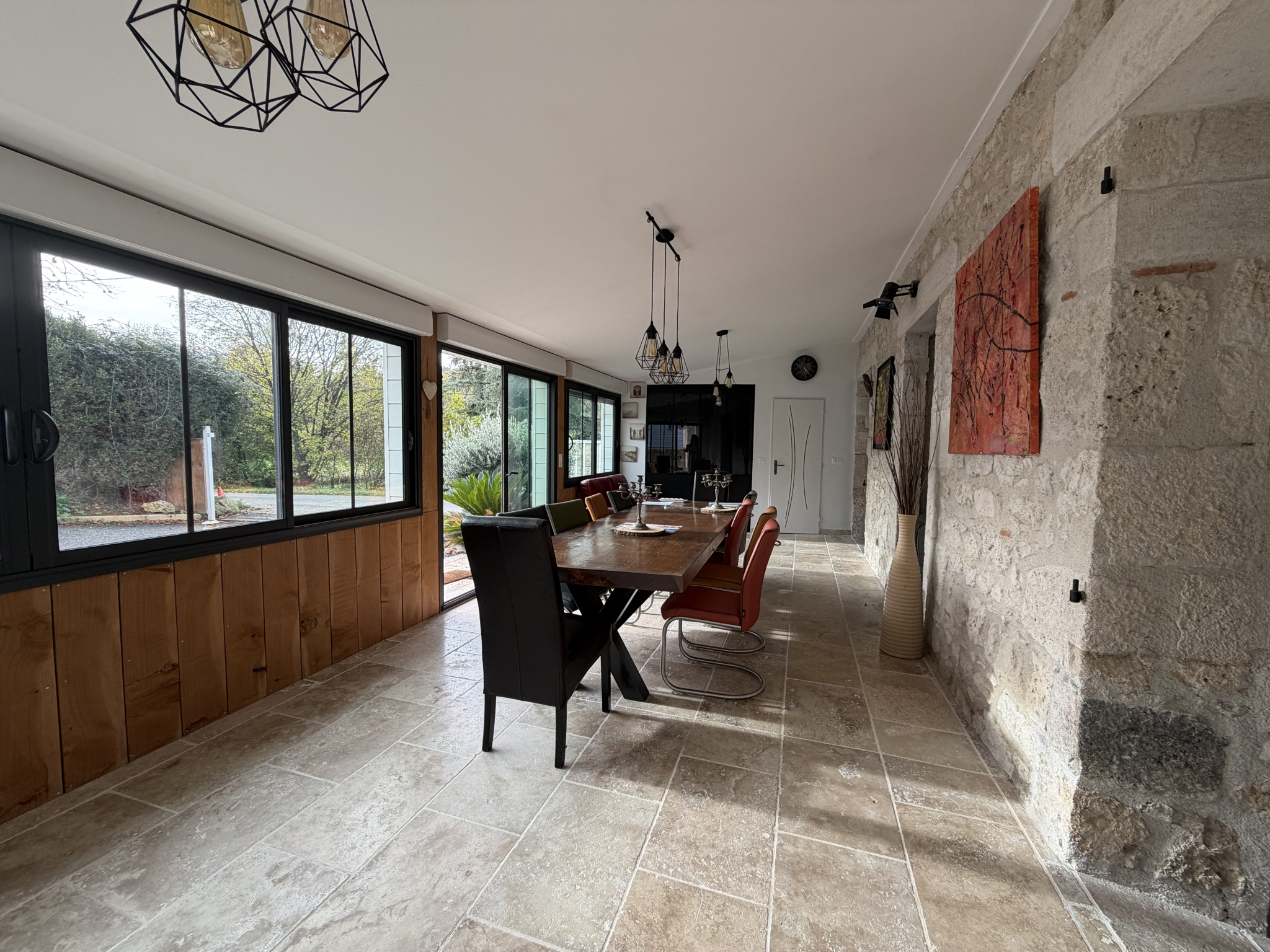 Cette maison principale en pierres vous invite à découvrir son confort, elle comprend une pièce de vie de plus de 80m2, quatre chambres à l'étage avec une vue sur la piscine.