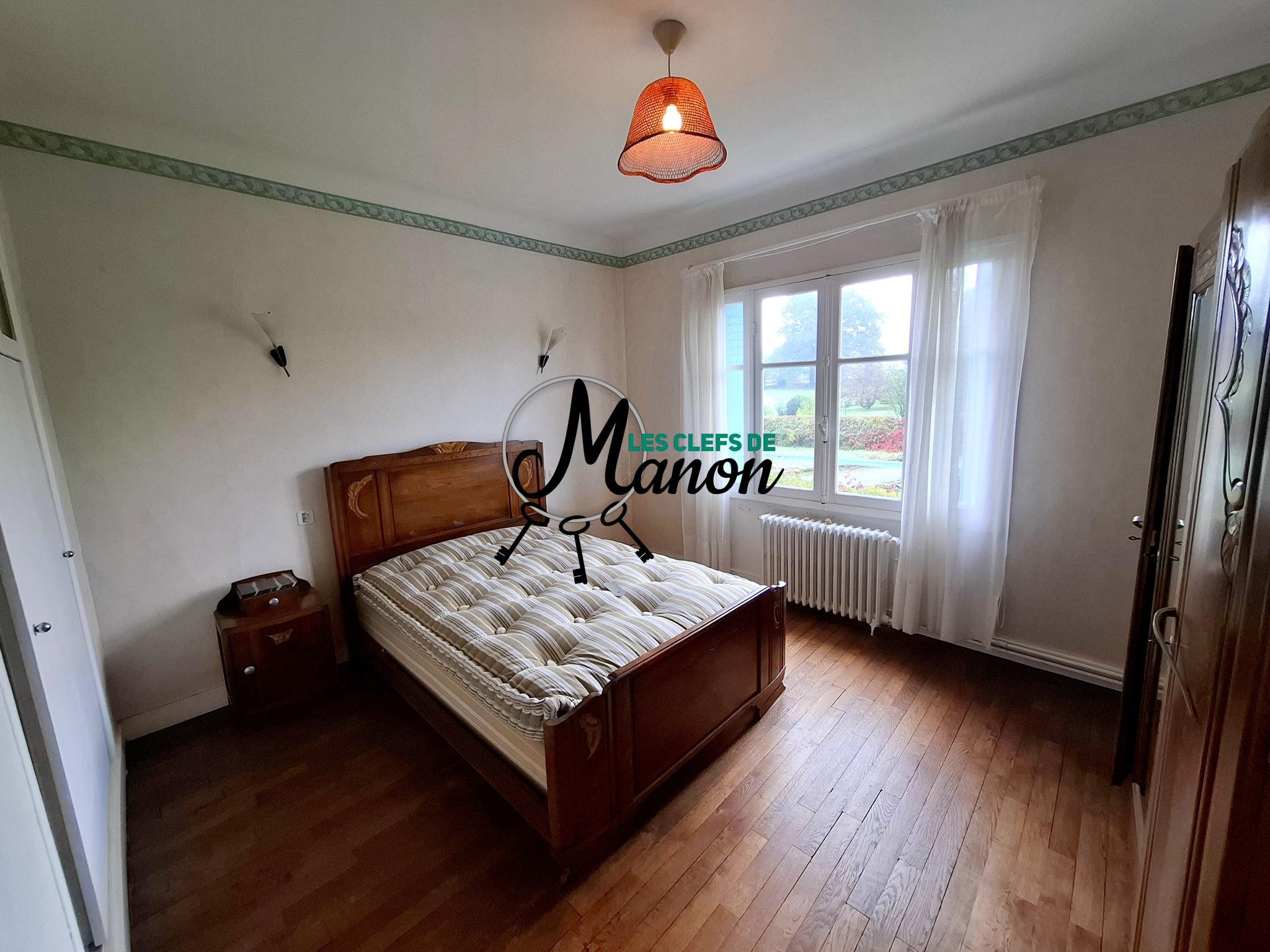 Cette maison vous offre une entrée/couloir avec rangements et accès au sous-sol, cuisine séparée, non aménagée, non équipée donnant sur séjour de 18.5m2, trois chambres dont deux avec placard mural de belles superficies ( 14, 13, et 9;6m2), salle d'eau et wc séparé. Sous sol complet regroupant une partie chaufferie, un grand garage avec porte PVC de 35m2, une pièce et une cave. A l'extérieur, un grand terrain arboré et fleuri, clos avec portail récent, avec puits, et dépendance en dur (idéal pour stocker du bois, bricolage ou animaux). Cadre très agréable, configuration de la maison idéale et modulable.