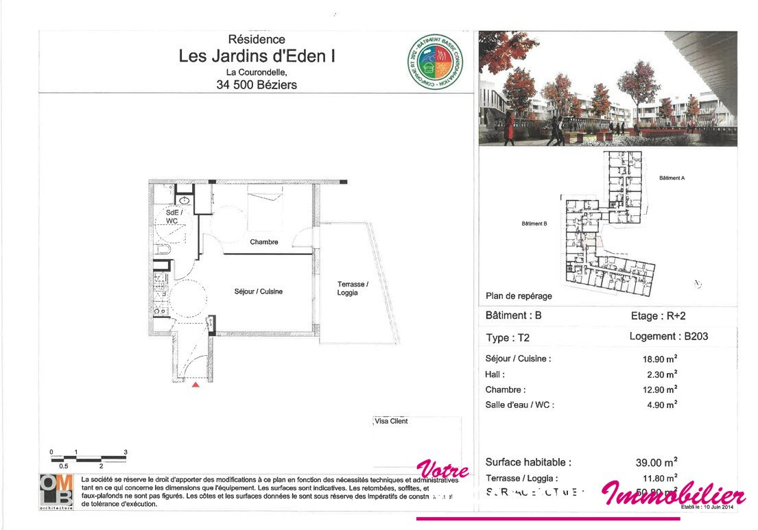 CL CONSEILS by LA TOILE IMMOBILIERE vous présente cet appartement T2 de 39m2 situé dans la résidence Les Jardins d'Eden 1 à Béziers, au 2ème étage d'un immeuble très bien entretenu avec ascenseur. Bénéficiant d'un emplacement stratégique à proximité des autoroutes A9 et A75, ainsi que de toutes les commodités (commerces, transports en commun, écoles), ce bien est une excellente opportunité pour un investissement locatif avec une bonne rentabilité. Le bien est vendu loué, avec un loyer de 404 euros HC et de 506 euros CC. Opportunité idéal pour les investisseurs ! L'appartement se compose d'un séjour lumineux avec cuisine ouverte, d'une chambre, ainsi que d'une salle de bain avec WC intégré. Vous apprécierez également la grande terrasse/loggia de 11,80m2, un véritable atout pour profiter de moments de détente en extérieur. La résidence sécurisée et bien entretenue offre un cadre de vie agréable et calme, tout en restant proche du centre-ville et des accès rapides aux principales voies de circulation. Bien soumis au statut juridique de la Copropriété. Nb de lots : 140. Charges annuelles de copropriété (Montant moyen annuel quote-part du budget prévisionnel vendeur) : 1 850,30EUR. Pas de procédure en cours. Bien soumis au statut juridique de la Copropriété. Nb de lots : 140. Charges annuelles de copropriété (Montant moyen annuel quote-part du budget prévisionnel vendeur) : 1 850,30EUR. Pas de procédure en cours. Honoraires : 10 % TTC inclus charge acquéreur (80 000 EUR hors honoraires) Surface CARREZ : 38.79 m2