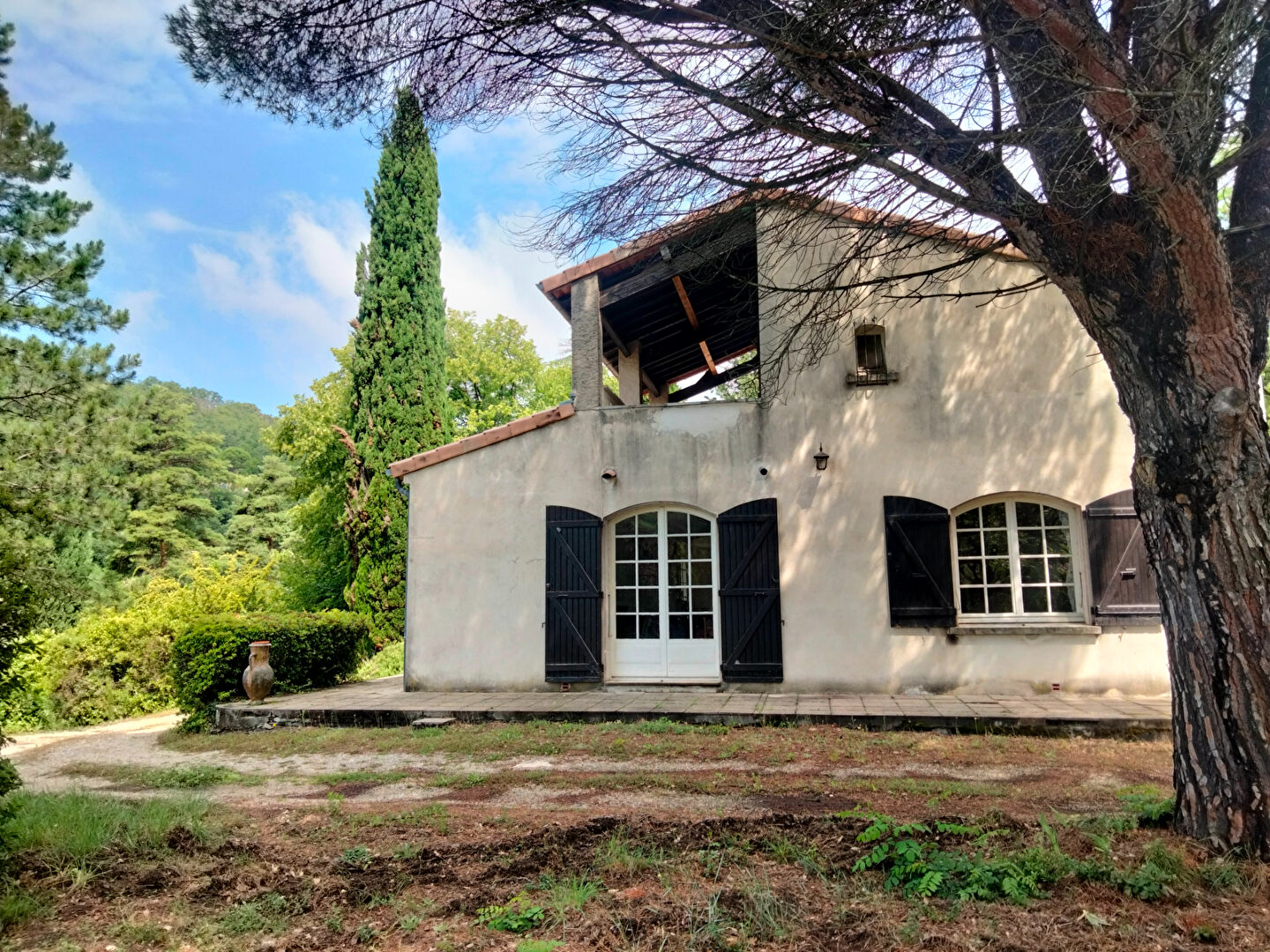 Nichée dans un écrin de verdure, grande villa de 10 pièces des années 1960 sur un terrain de 5333m2 dont une partie constructible) avec piscine 9 x 4.