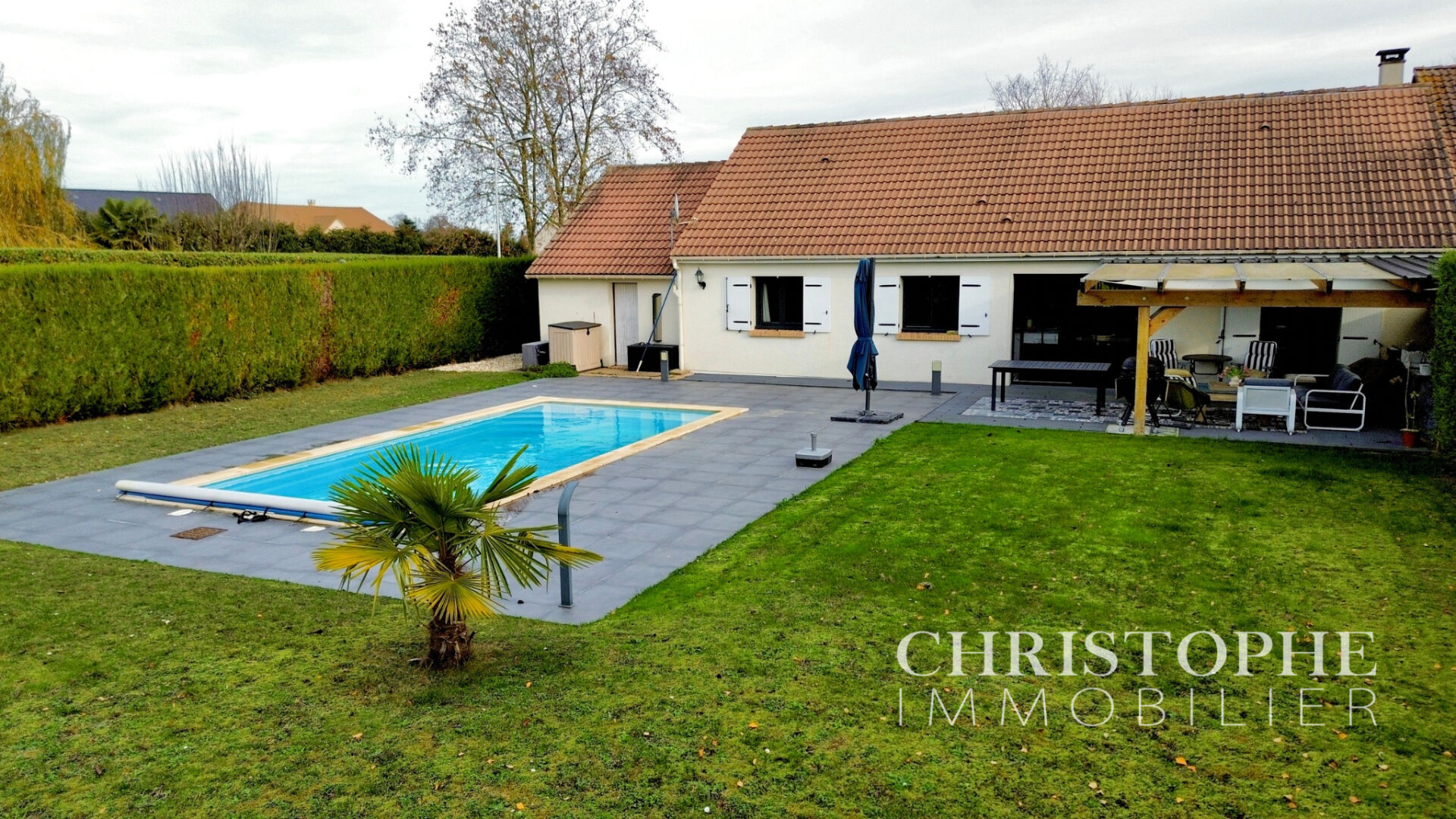 Maison de 100m2 de plain-pied avec piscine chauffée.