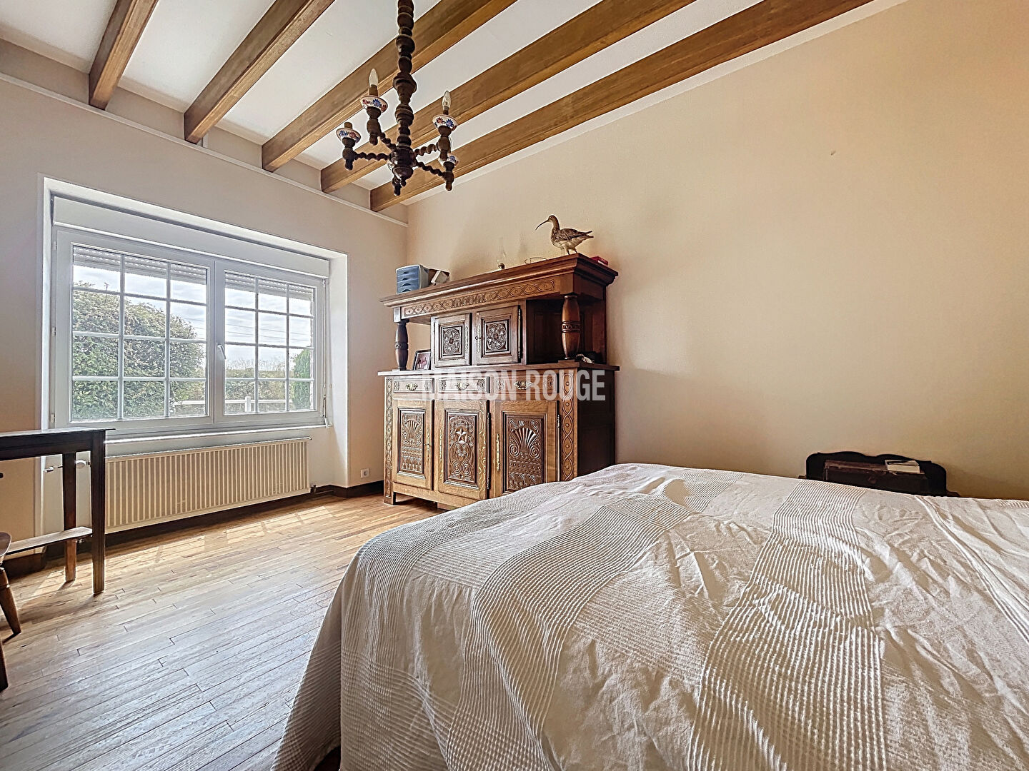 Elle se compose au rez-de-chaussée d'une entrée desservant un salon, une salle à manger avec insert, une cuisine, un cellier, une salle d'eau et un WC.