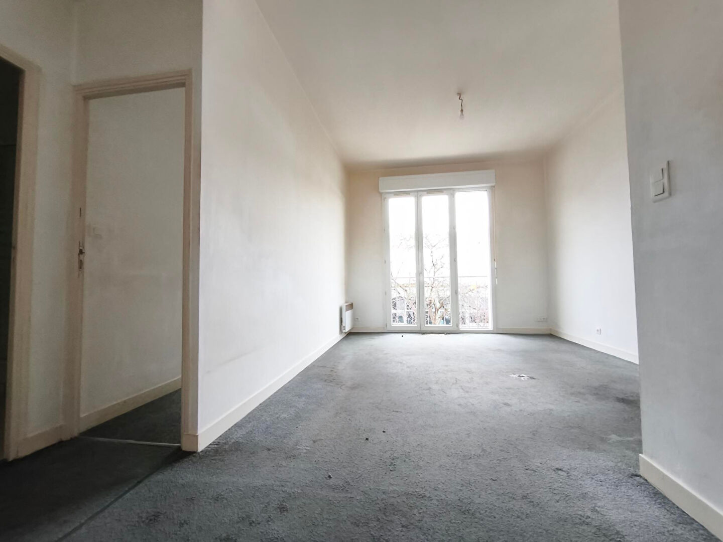 Une entrée dans la pièce de vie offrant une belle hauteur sous plafond avec accès à un balcon, pièce lumineuse et traversante, avec la cuisine à aménager et équiper, deux chambres, une salle d'eau, des toilettes.