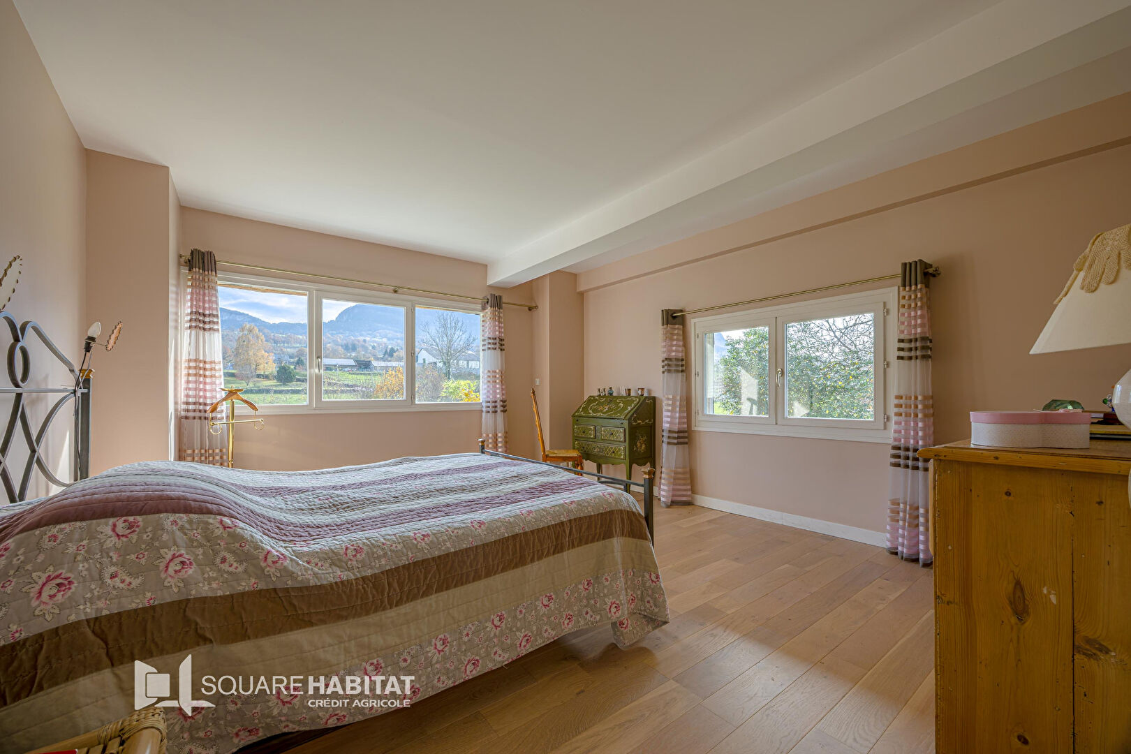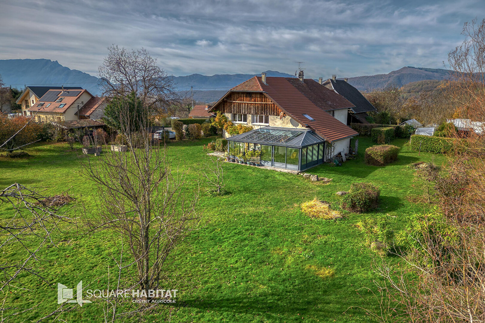A 15 mn Aix les Bains, A seulement 10mn de la sortie d'autoroute Nord et 10 mn de Cusy, au calme. Très belle maison fin 19ème rénovée. Elle est composée au rez-de-jardin d'une entrée, dégagements, cuisine indépendante aménagée et équipée, salle à manger avec cheminée, salon avec cheminée , grande véranda avec spa, 2 chambres, salle d'eau avec WC , wc indépendant , dressing. En surface annexes, arrière-cuisine, chaufferie avec buanderie , atelier. A l'étage, palier avec dégagement, 3 chambres, salle d'eau, 2 dressings, wc, combles et grenier aménageables. Chauffage bi-énergie gaz et panneaux solaires rez-de-jardin et étage. En extérieur, cabanon de jardin en bois, accès par portail électrique, puits. Le tout sur un terrain plat piscinable d'environ 4395m² en zone Agricole du PLUi de Grand Lac, avec Carport pour 2 voitures et parking pour 3 voitures.. Electricité ok. Belle maison, jolie prestation