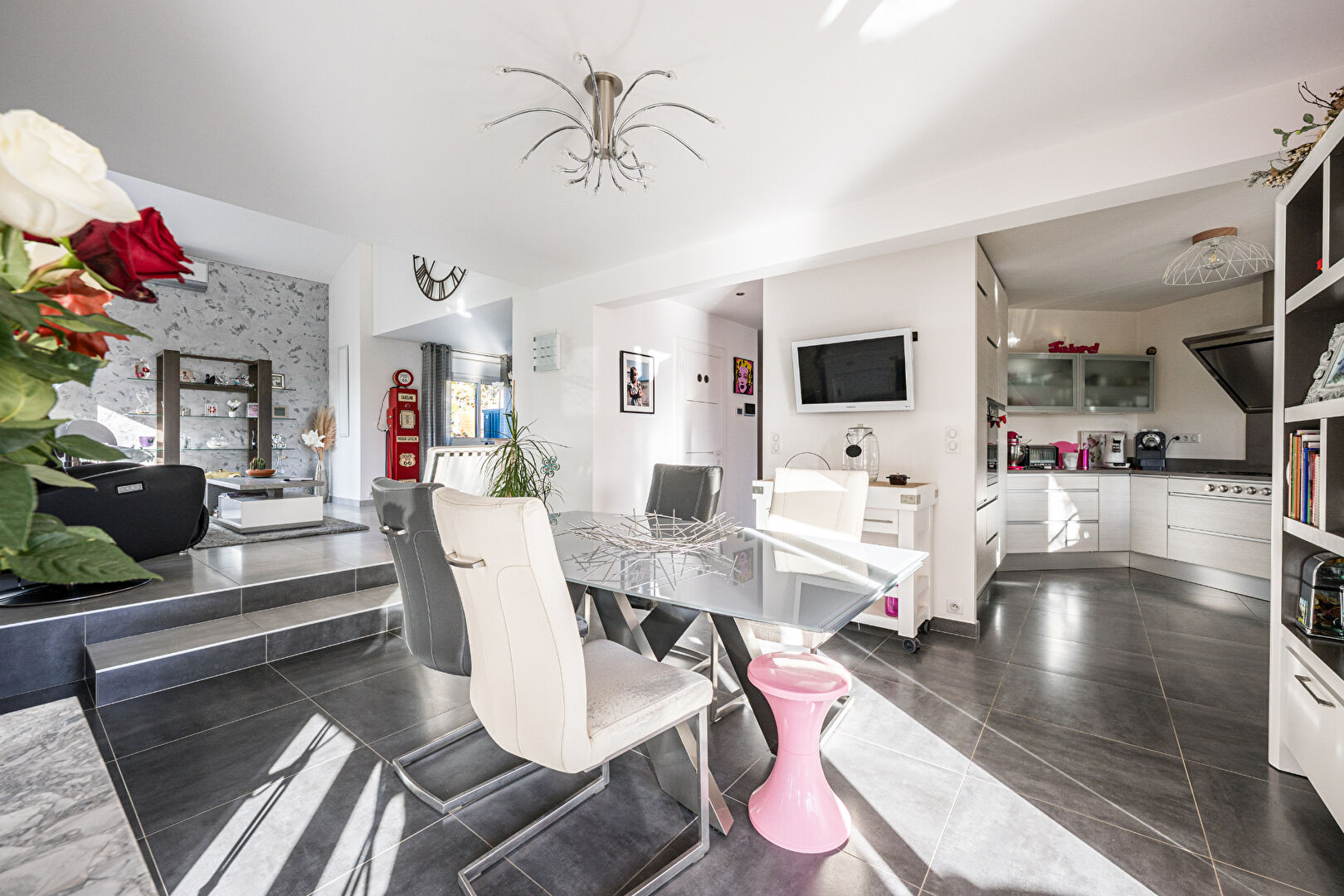 Située dans un environnement calme et agréable, cette maison de 5 pièces construite en 1985 et entièrement rénovée depuis 2015 offre de beaux volumes et des prestations de qualité. Avec une superficie habitable d'environ 167 m² sur deux niveaux, elle séduira les familles à la recherche de confort, d'espace et de modernité.