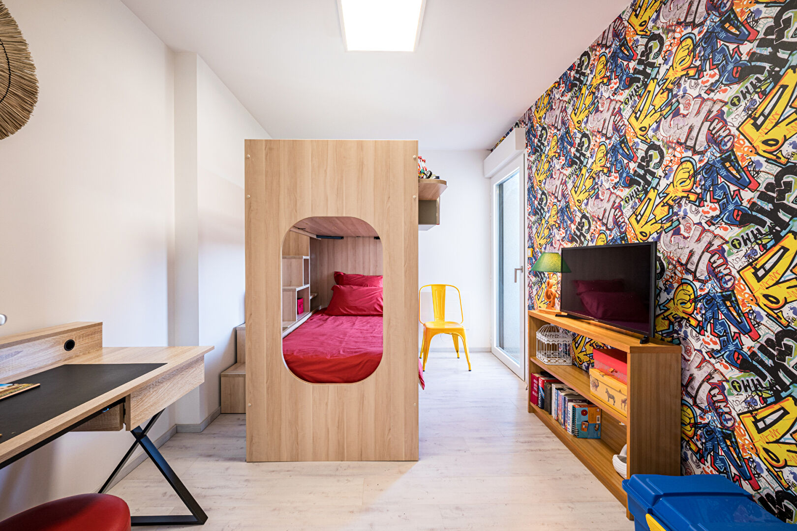 3 chambres et une grande salle de bain avec accès à un balcon privatif. Un second WC indépendant. 2 autres pièces pouvant servir de dressing/ rangement viennent compléter ce niveau.