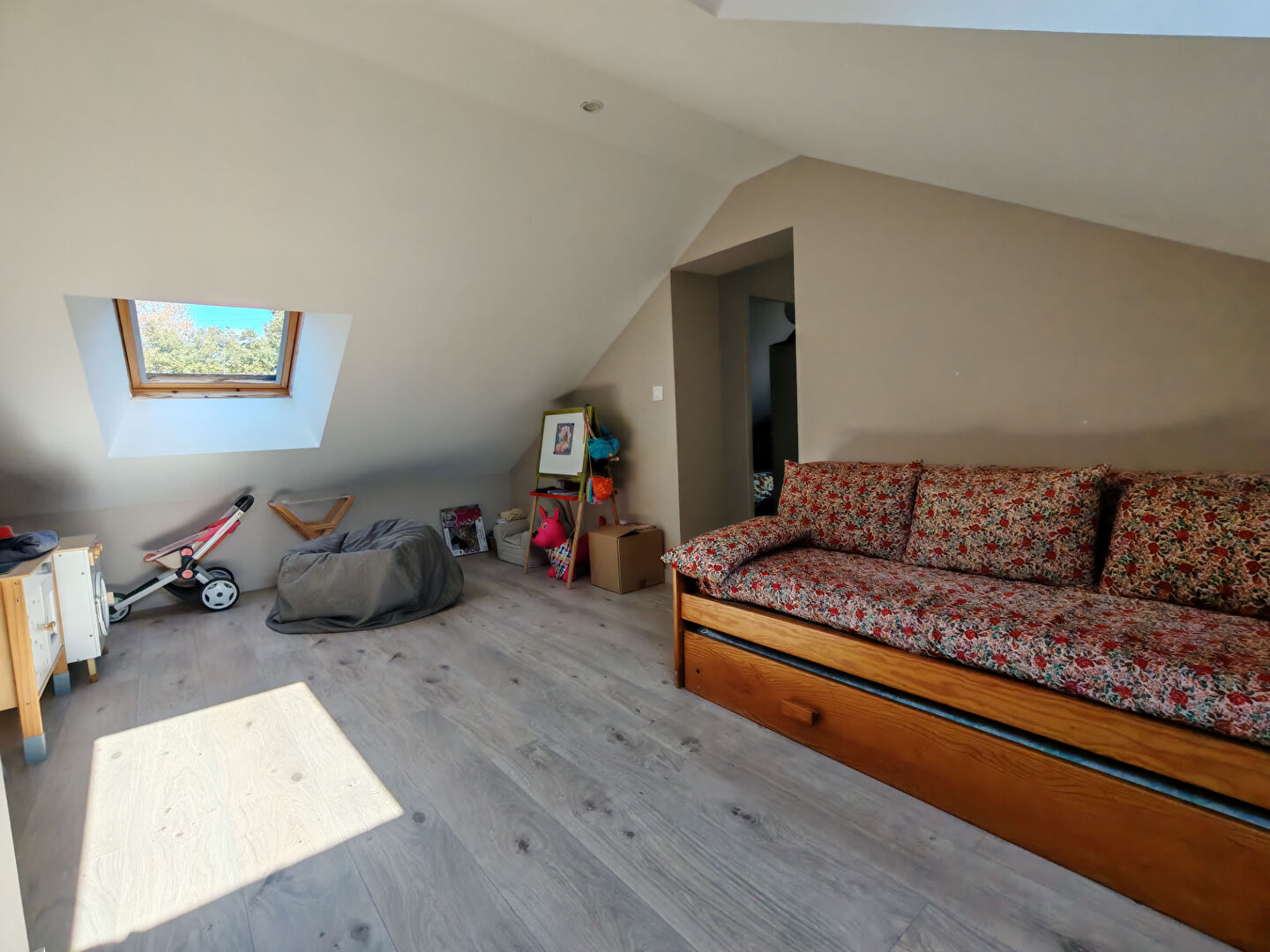 A l'étage, une mezzanine pouvant faire office de salle de jeu ou bureau donne accès à deux chambres, des toilettes et une pièce à rénover pouvant être aménagée en 4ème chambre.