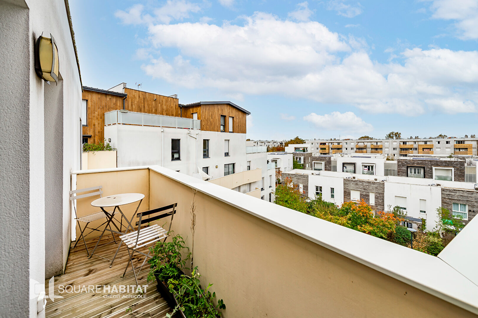 L'ensemble de l'appartement donne directement sur un balcon de 5 m² exposé ouest avec une vue dégagée.
