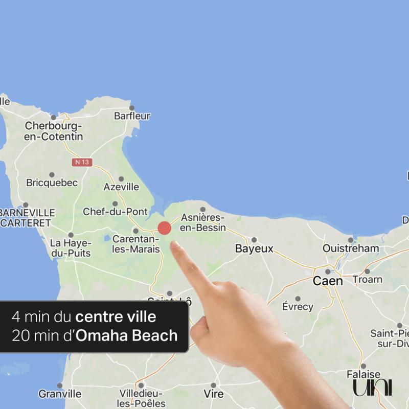 - Localisation idéale : à 4 min du centre-ville d'Isigny-Sur-Mer et à 19 min des plages d'Omaha Beach