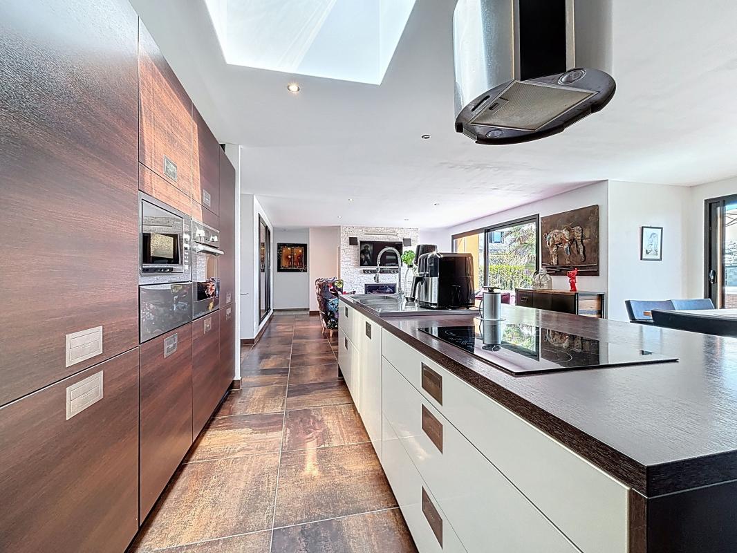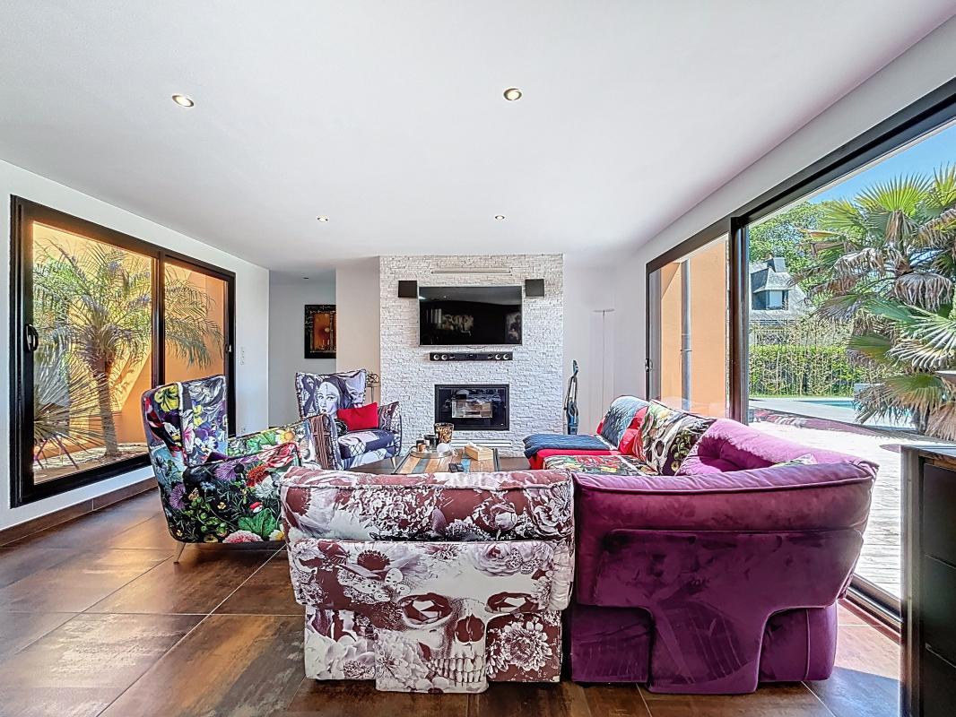 L'espace de vie, spacieux et lumineux, s'organise autour d'un vaste salon-séjour avec cuisine ouverte. De grandes baies vitrées orientées plein sud prolongent harmonieusement l'intérieur vers une terrasse accueillante et une belle piscine creusée, nichée au coeur d'un jardin arboré.