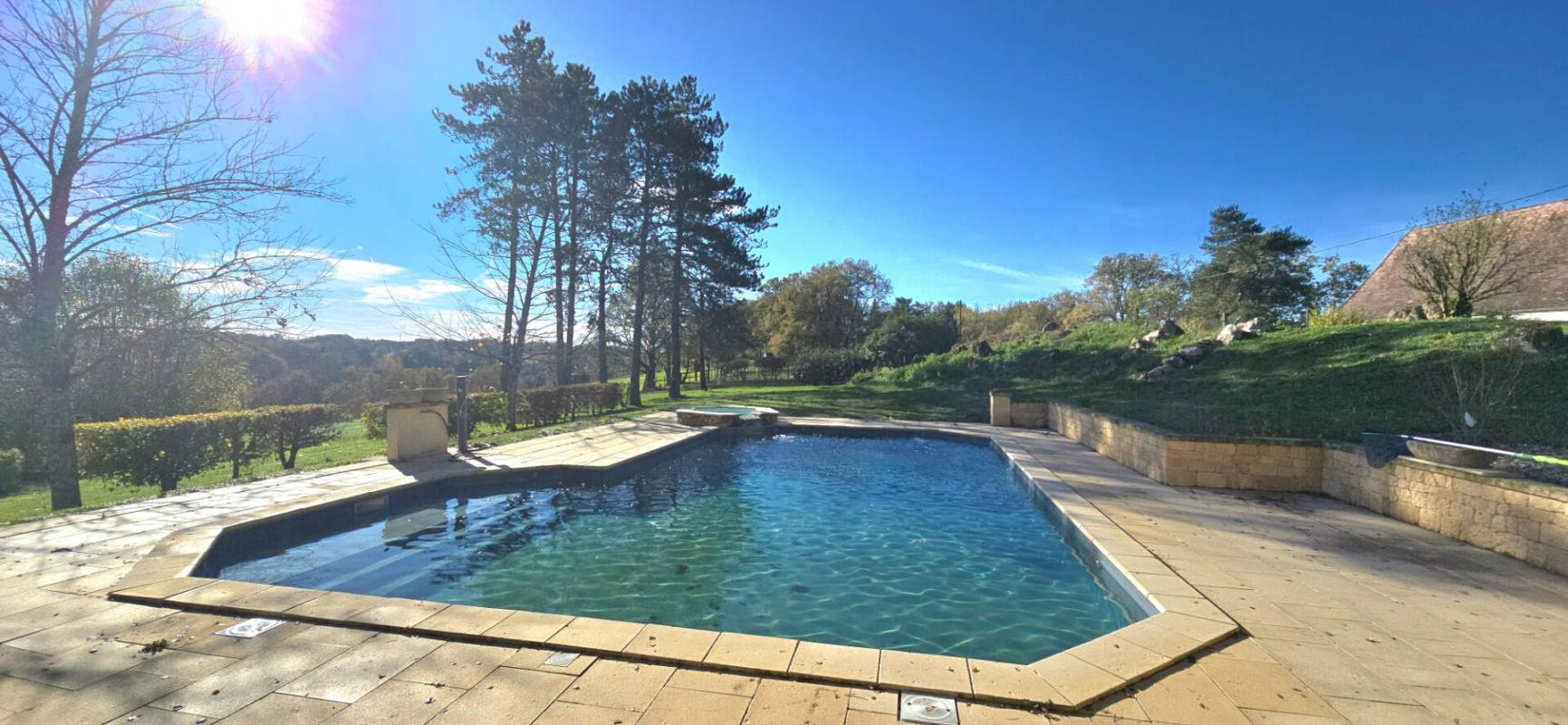 Cette propriété en pierre, typique du Périgord, se compose de plusieurs corps de bâtiment édifiés sur un terrain clos et arboré de 28638 m². On découvre une maison principale de type 6, comprenant : Entrée, salon / salle à manger avec cheminée (insert), cuisine équipée, dégagement desservant une chambre avec dressing, salle d'eau privative et wc. L'étage bénéficie de deux accès indépendants, permettant l'usage des chambres aménagées en suite. Une première chambre mansardée contient un coin kitchenette, une salle de bains privative avec wc et un petit salon. Accessible depuis la tour et communiquant avec le séjour, on trouve une petite chambre d'enfant, une belle chambre mansardée avec salle d'eau privative et wc. Le rez de jardin offre une salle de repas, une seconde cuisine aménagée, une partie sous-sol abritant un cellier, un espace buanderie et une cave. A deux pas de la maison se trouve un gite indépendant, comprenant : un salon, une cuisine équipée, deux chambres, une salle d'eau et un wc. Cet ensemble immobilier de caractère comprend également, différentes terrasses, des prés pour des chevaux, une belle piscine (12 x 6), sans vis à vis, un pool house, de nombreuses dépendances, un garage fermé et une vue imprenable sur le village de St Alvère. Idéalement située, à proximité des commodités, cette demeure de charme convient parfaitement pour un projet familiale ou une exploitation commerciale en chambres d'hôtes.