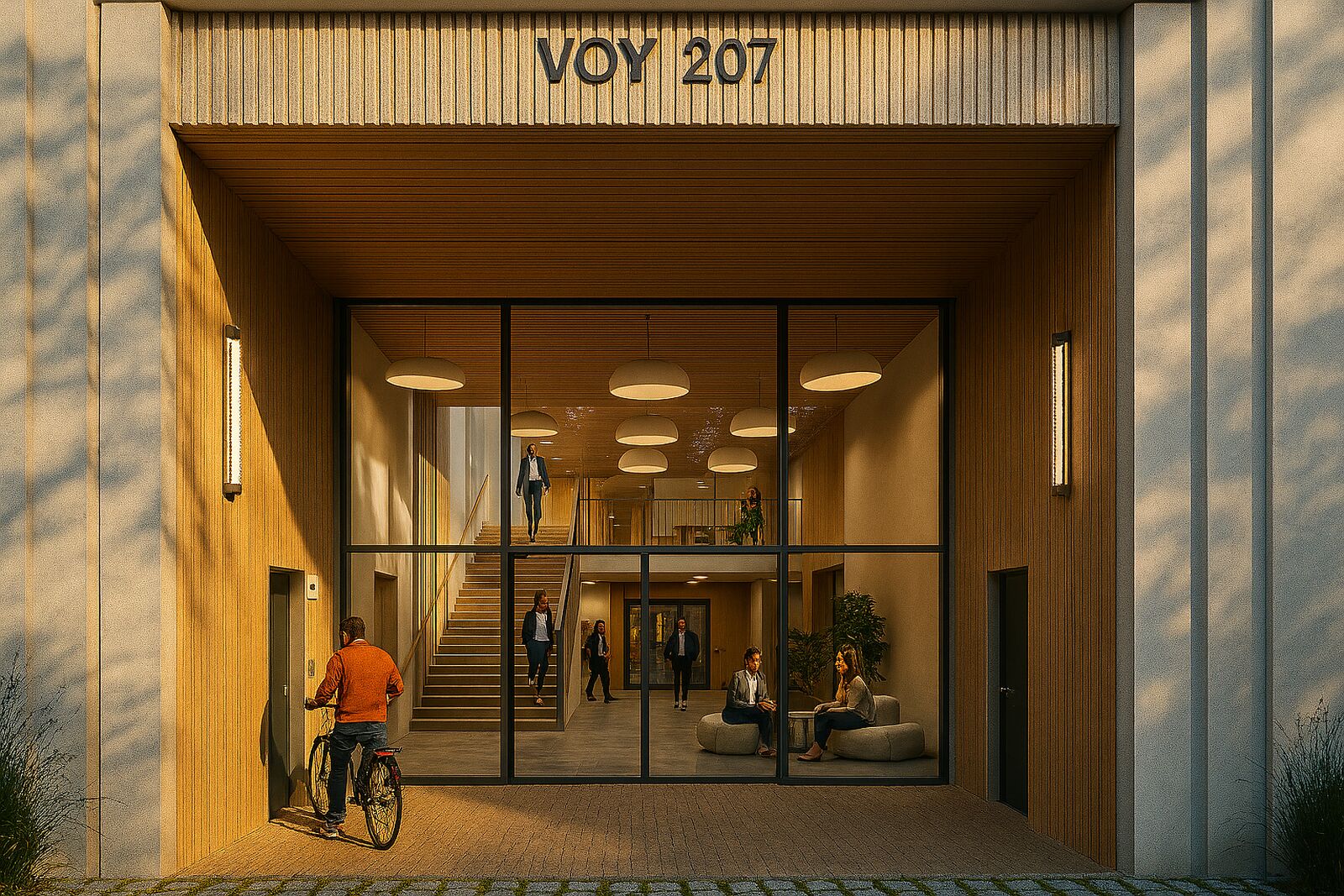 Un immeuble certifié BREAM, capacitant à la ligne architecturale noble et cinétique, constitue un ensemble hybride composé d'une maison médicale, de bureaux et d'ateliers