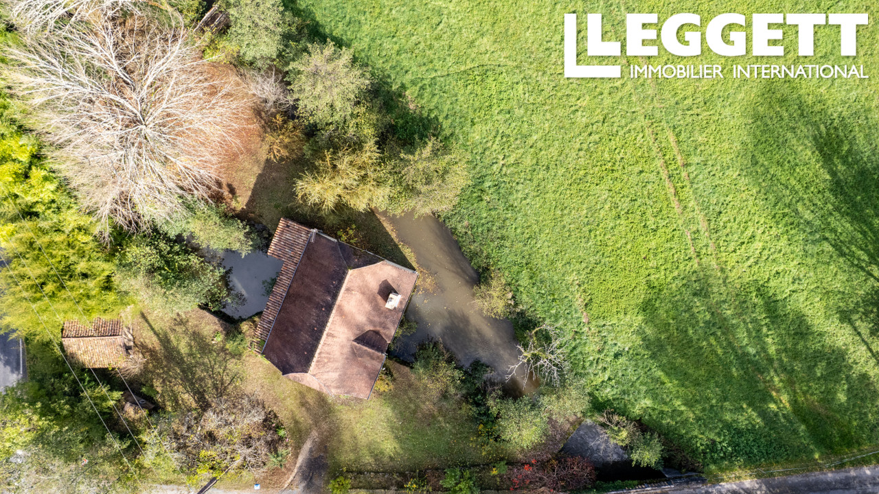 La propriété dispose d'extérieurs avec espaces ombragés. Le bief passe sous et autour de la maison, celui-ci a été élargi afin de créer un petit bassin devant la terrasse couverte. Deux ponts permettent de traverser les biefs, ou pécher..!