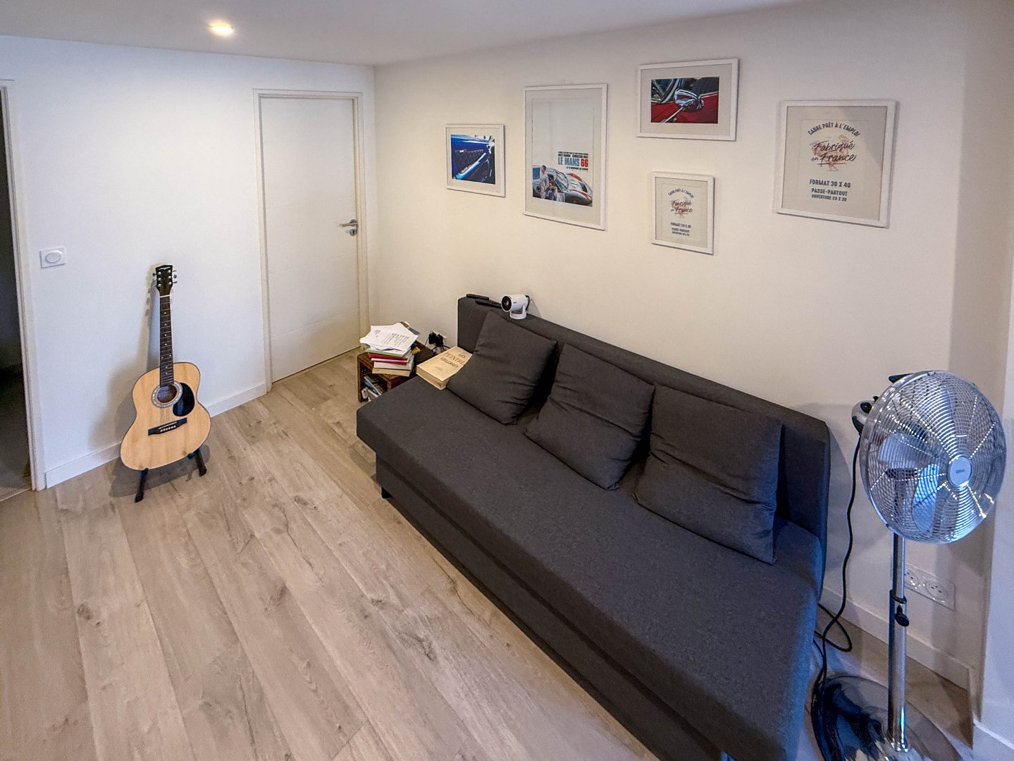 Il se compose d'un salon-séjour lumineux avec cuisine aménagée et équipée, d'une mezzanine de 7,28 m² (en plus des 23m2) permettant un espace nuit confortable, ainsi que d'une salle d'eau et de WC indépendants.