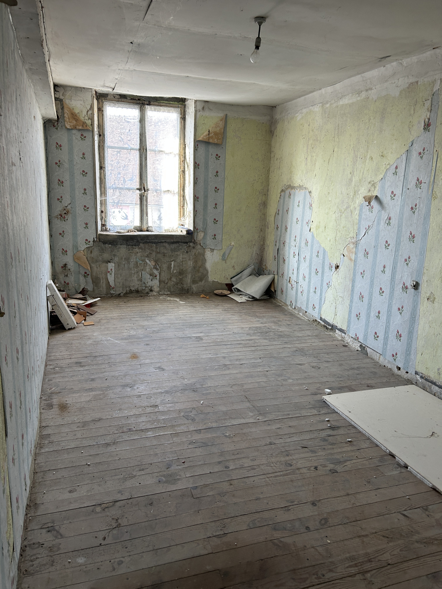 Maison sur trois niveaux comprenant: -en rez-de-rue: ancienne cuisine, séjour, pièce avec salle s'eau, cave. -en rez-de-jardin: véranda, cuisine, dégagement, buanderie, séjour, deux chambres. -à l'étage: cuisine,séjour, chambre, emplacement salle de bain-wc, grenier. Le tout à restaurer totalement. Jardin avec atelier et double garage. Deux autres jardins non attenants.