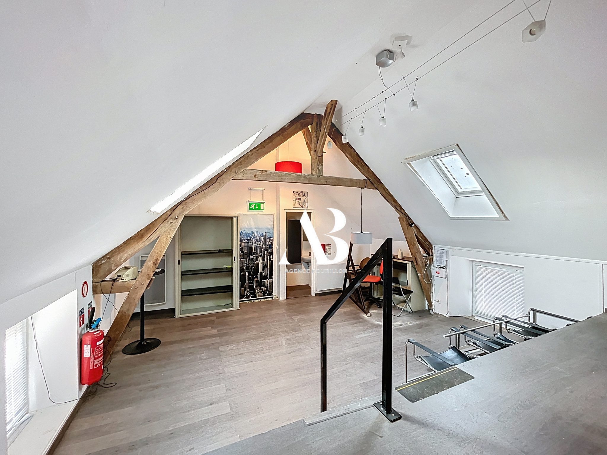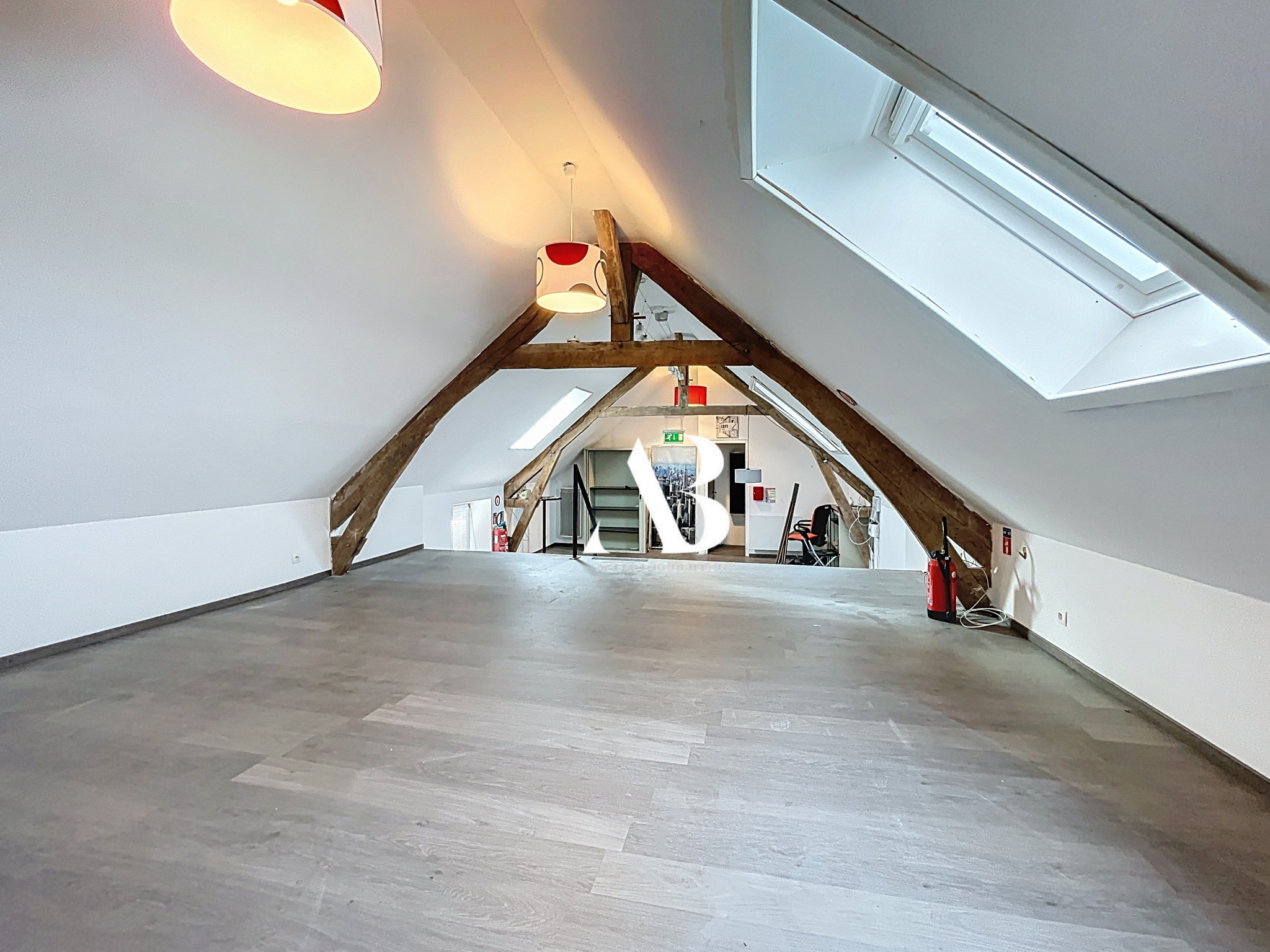 Au rez-de-chaussée : une grande pièce d'environ 66m2 composée d'une salle d'eau (douche + WC), un espace cuisine avec machine à laver, un petit bureau et d'une pièce de stockage.