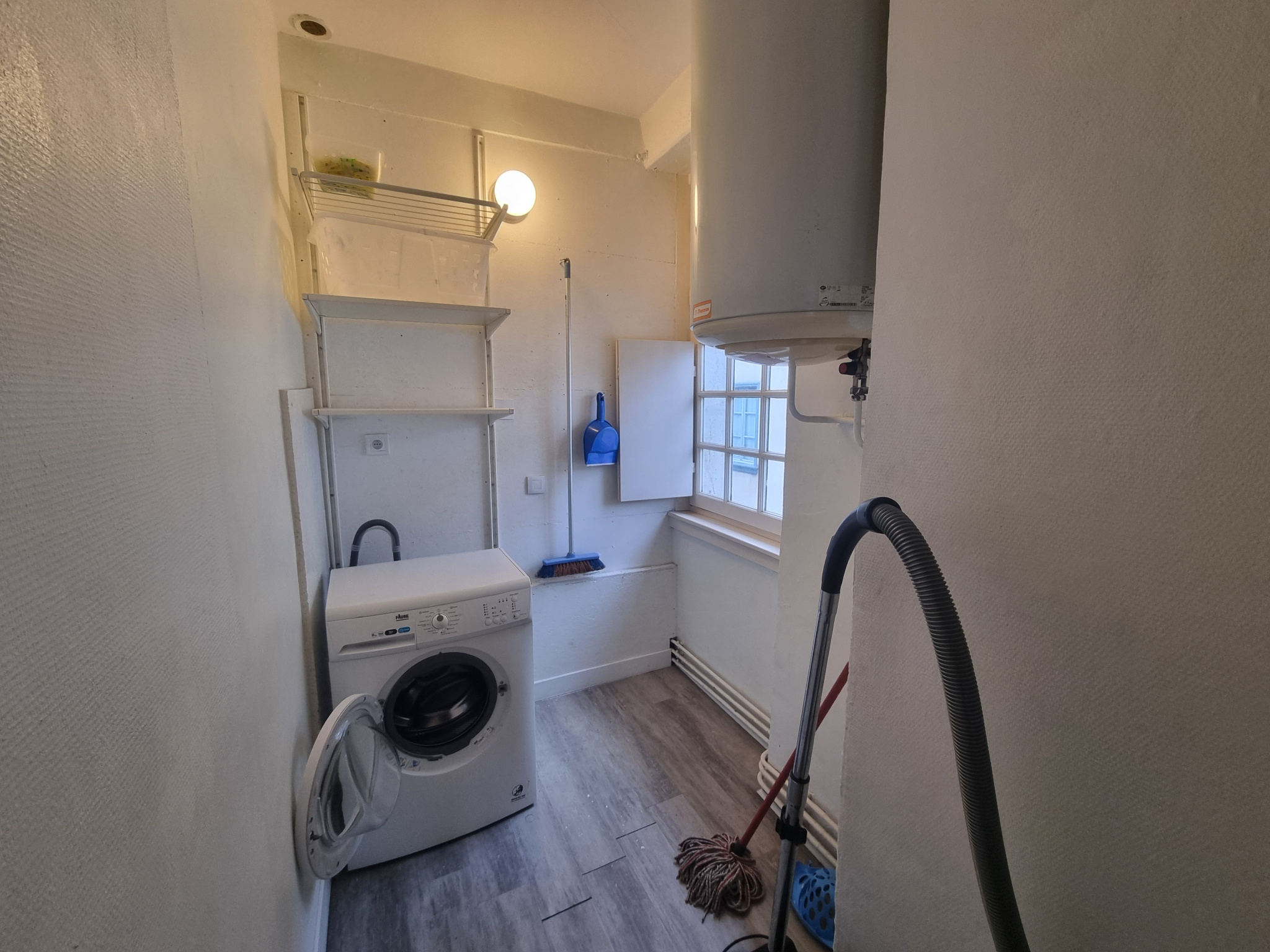 L'appartement séduit par ses volumes agréables et sa luminosité. Il comprend une cuisine aménagée, un dégagement fonctionnel et une salle de bain. Les combles, accessibles depuis le logement, offrent un espace complémentaire appréciable.