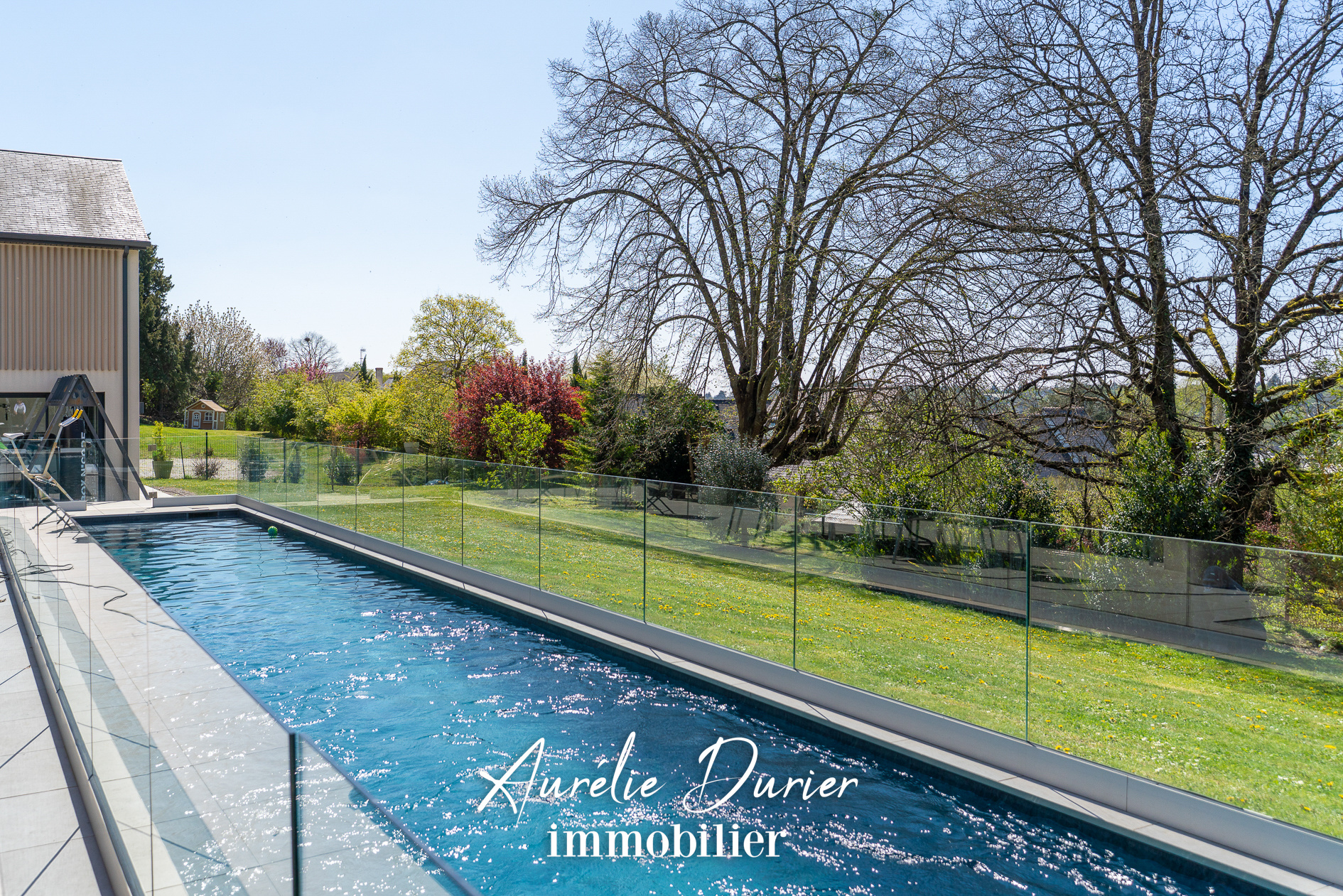 À l'extérieur, la terrasse offre un espace idéal pour profiter de moments en famille ou entre amis, tout en admirant la piscine chauffée de 23 mètres équipée d'un système de nage à contre-courant. Le jardin orienté plein sud-ouest, invite à la détente sous le soleil.