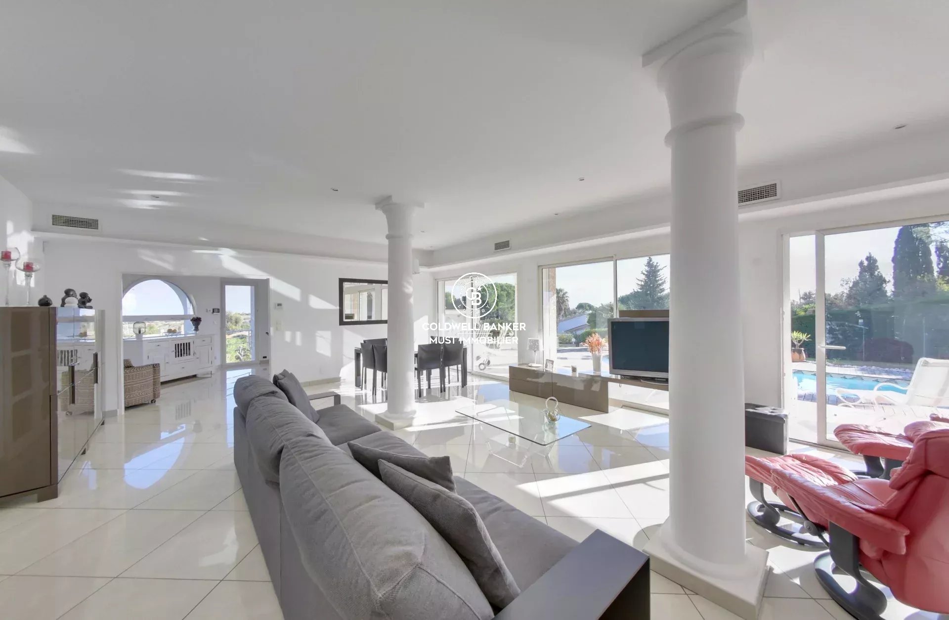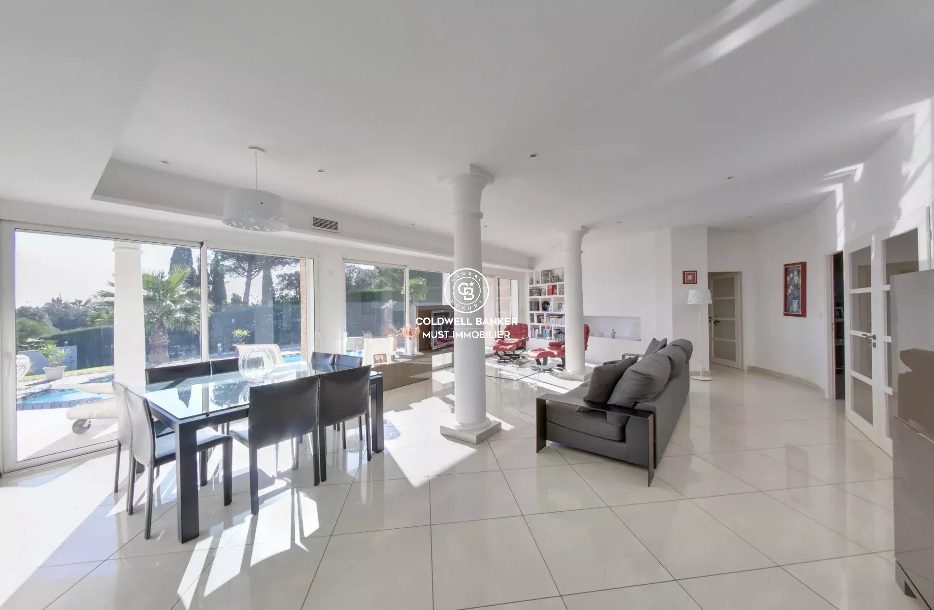 Le rez-de-chaussée offre une pièce de vie baignée de lumière, ouverte sur la terrasse et la piscine exposée plein sud, sans aucun vis-à-vis.