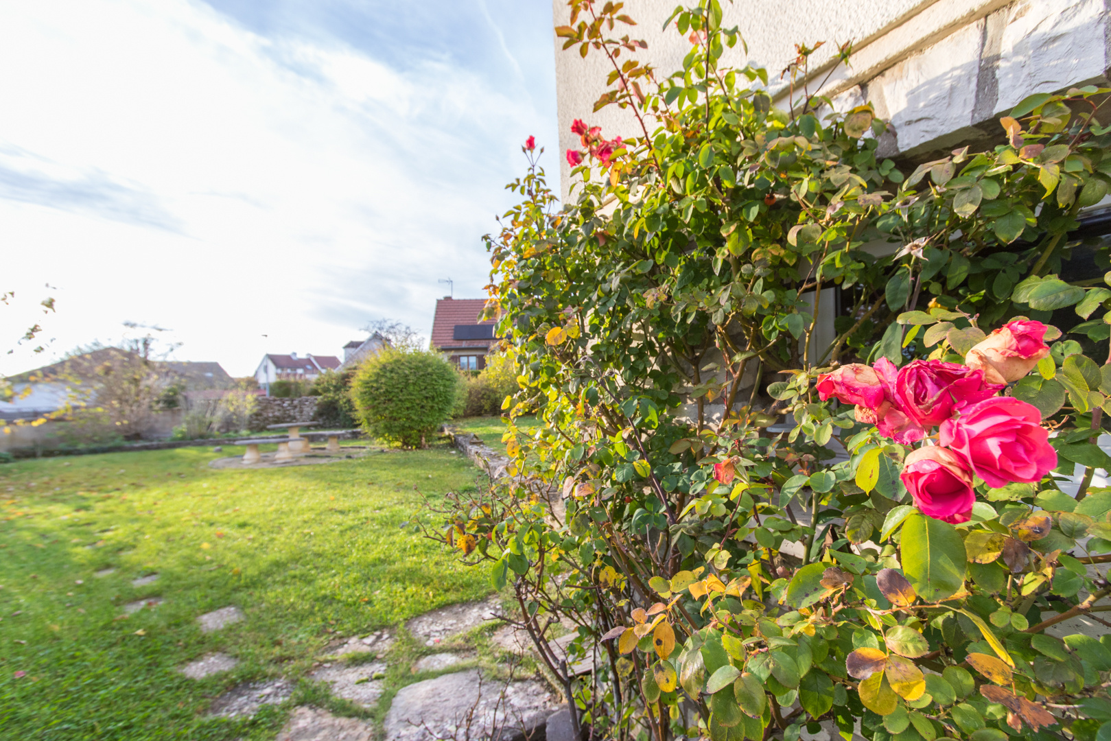 Maison indépendante dotée d'un superbe jardin pouvant accueillir une extension, élevée sur sous-sol et comprenant véranda, trois chambres, séjour, cuisine séparée.