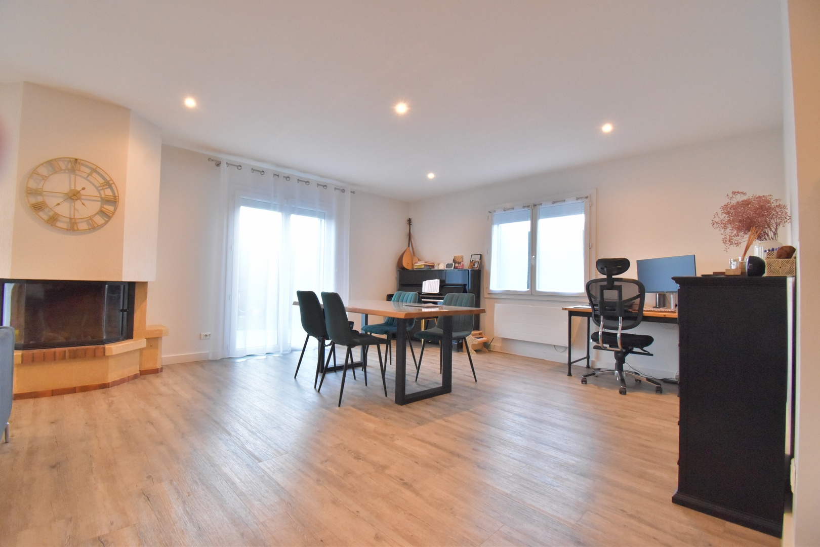 Composée d'une cuisine équipée, un spacieux séjour-salon lumineux avec cheminée ouvrant sur une terrasse, trois chambres, une salle d'eau, un wc séparé.