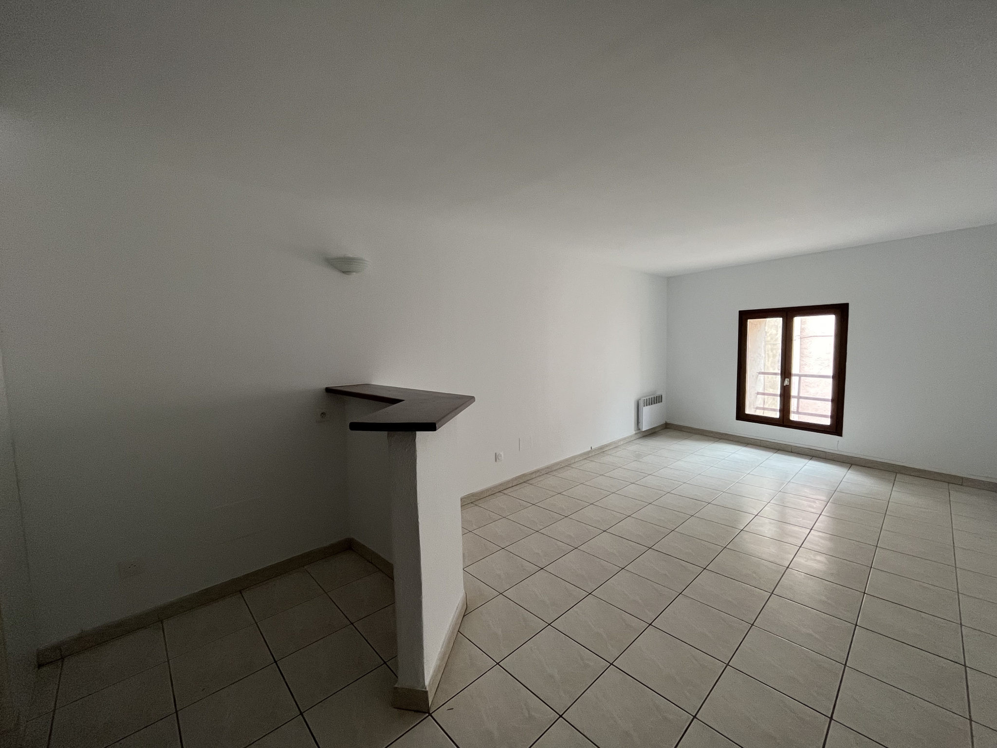 Un salon-séjour lumineux avec cuisine ouverte