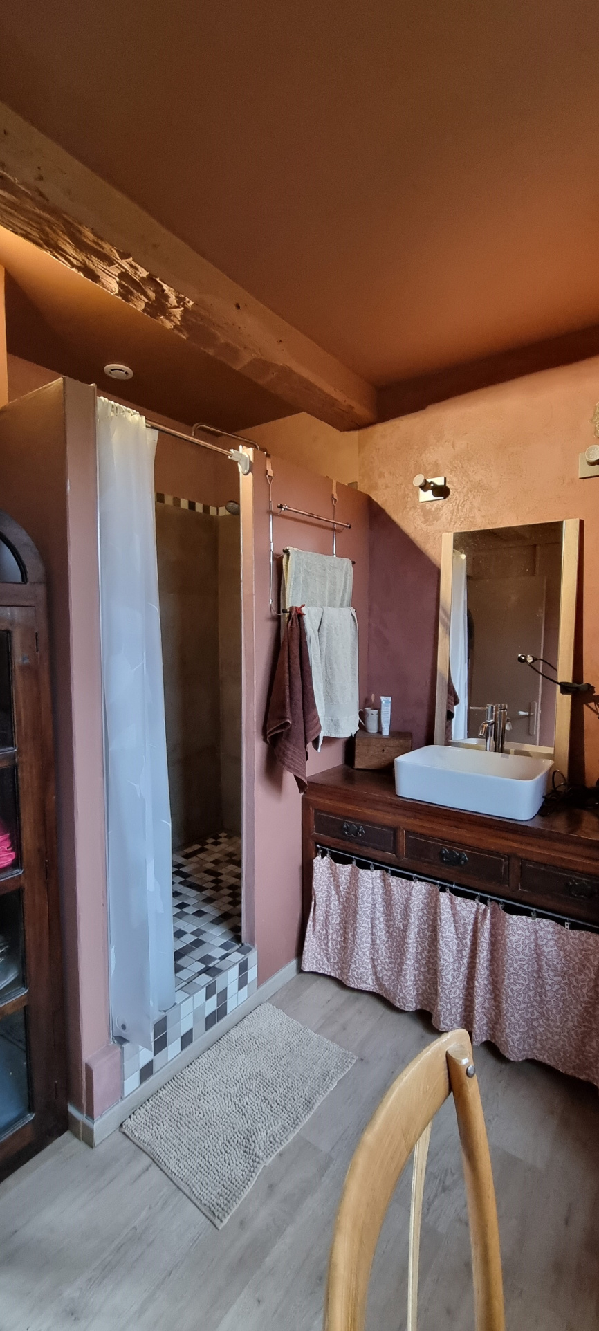 Ce bien dispose de deux grandes chambres de 20 m2, d'une pièce à vivre de 38 m2 chauffée par un polyflam lui-même raccordé au chauffage central pour plus de confort, cuisine séparée, salle d'eau et WC suspendu.