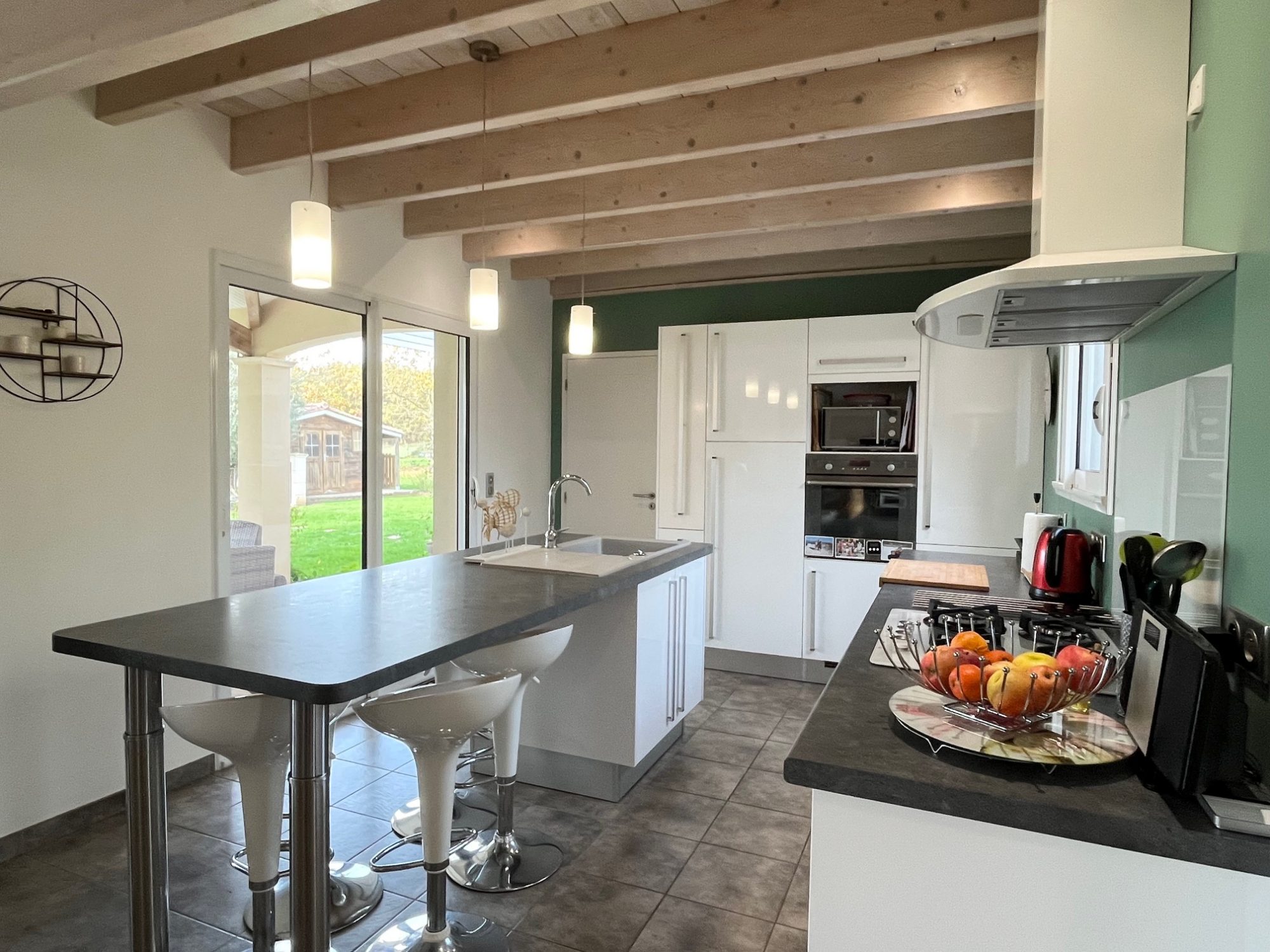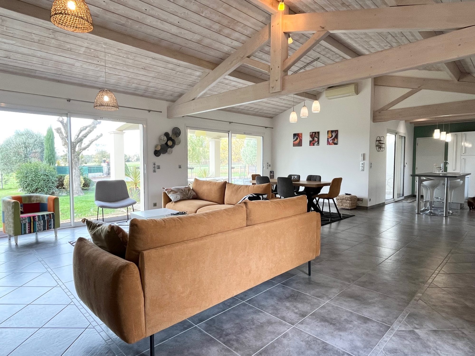 Découvrez cette magnifique maison individuelle de plain-pied, construite en 2011, offrant un espace de vie spacieux et lumineux de 150 m². Située dans un cadre paisible avec une vue imprenable sur la campagne, cette propriété allie modernité et confort. Avec ses 6 pièces, dont 3 chambres confortables, un bureau et 2 salles de bains, cette maison est idéale pour les familles ou ceux qui recherchent un espace de vie généreux. Le séjour de 50 m² est parfait pour les réunions familiales ou les soirées entre amis. La cuisine équipée, les ouvertures en PVC et l'état intérieur excellent ajoutent une touche de luxe à votre quotidien. Profitez d'un jardin de 2340 m², parfait pour les enfants ou les amateurs de nature, et d'une terrasse pour des moments de détente en plein air. La piscine de 9m x 4m est l'endroit idéal pour se rafraîchir pendant les chaudes journées d'été. Le stationnement extérieur pour 4 voitures complète cette propriété. À seulement 5 minutes en voiture, vous trouverez une crèche, deux maternelles, deux écoles élémentaires, un collège, un commerce d'alimentation générale, un restaurant, et un médecin généraliste. La toiture en très bon état et l'assainissement garantissent une tranquillité d'esprit. Ne manquez pas cette opportunité de vivre dans une maison récente, en excellent état, avec toutes les commodités à proximité. Contactez-nous dès aujourd'hui pour une visite!