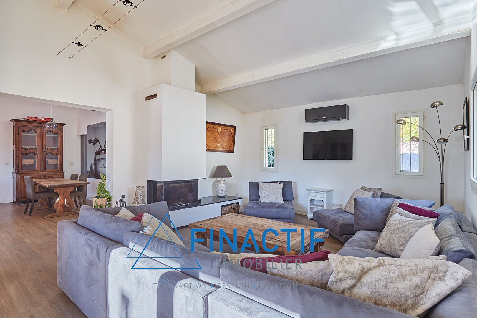 Séjour avec cheminée insert, cuisine ouverte avec îlot dinatoire et salle à manger, espace bureau, cellier, 2 suites parentales spacieuses avec dressings, 3 chambres confortables et une salle d'eau. -