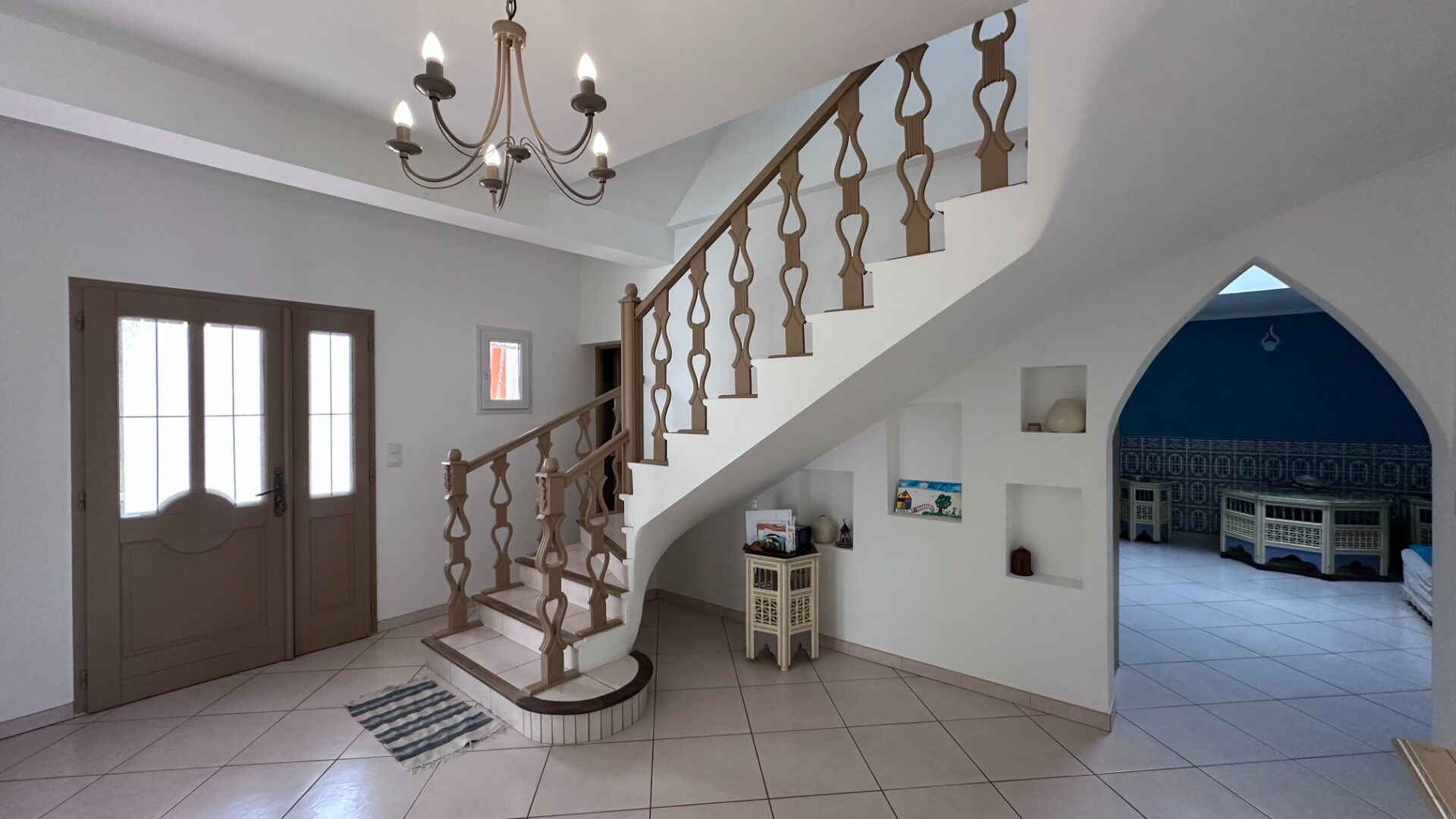 Maison de 175 m² construite en 2006 sur une belle parcelle de 1 196 m², offrant un cadre de vie agréable et des prestations de qualité. Dès l'entrée, un hall lumineux dessert un spacieux séjour double baigné de lumière ainsi qu'une cuisine provençale entièrement équipée, à la fois chaleureuse et fonctionnelle. Le rez-de-chaussée comprend également une suite parentale confortable avec sa salle de douche privative, idéale pour une vie de plain-pied.