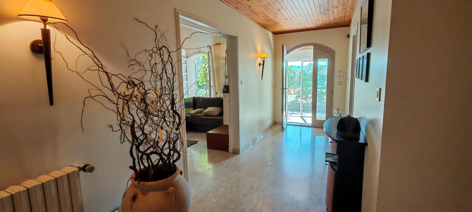 Dès l'entrée, un vaste hall accueille les visiteurs et distribue les différentes pièces de vie. Le rez de chaussée propose un chaleureux salon d'environ 30 m² bénéficiant d'une belle hauteur sous plafond, créant une atmosphère lumineuse et conviviale. Une cuisine aménagée et une salle à manger complètent cet espace de vie, avec un accès direct à une agréable véranda exposée plein sud, idéale pour profiter de la lumière naturelle et de la vue sur le jardin.