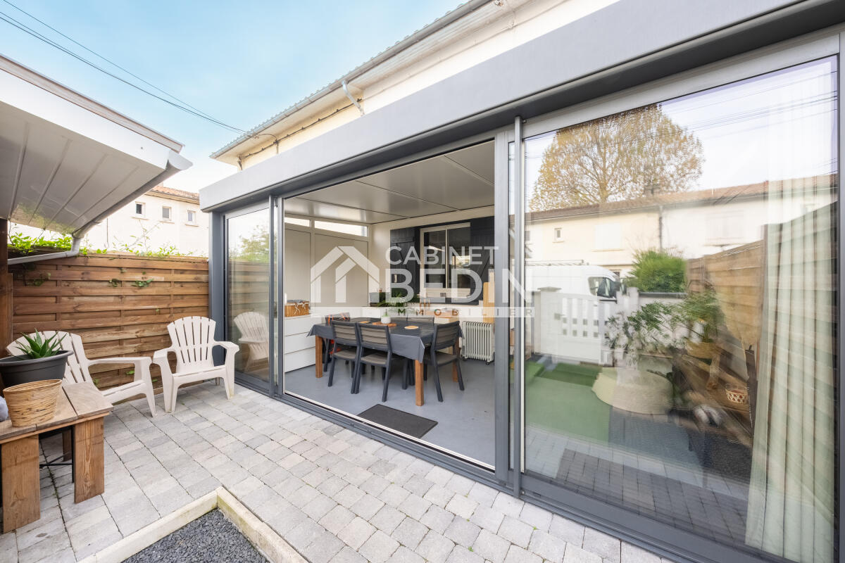 Exclusivité CABINET BEDIN - PESSAC. Adorable maison de ville rénovée. Vous accéderez à la maison par une véranda moderne, puis par une entrée qui dessert une cuisine toute équipée et semi ouverte sur le salon. Une buanderie et un wc complètent le rez-de-chaussée. A l'étage, deux jolies chambres avec placards se partagent une salle d'eau contemporaine. Un plus, le comble a été aménagée en coin nuit. Pour les beaux jours, vous aurez la jouissance d'un jardinet face au salon bien exposé donnant sur des espaces verts. un autre espace extérieur sur l'avant. Vous l'aurez compris une belle opportunité si vous souhaitez une maison sur Pessac sans travaux à prévoir.