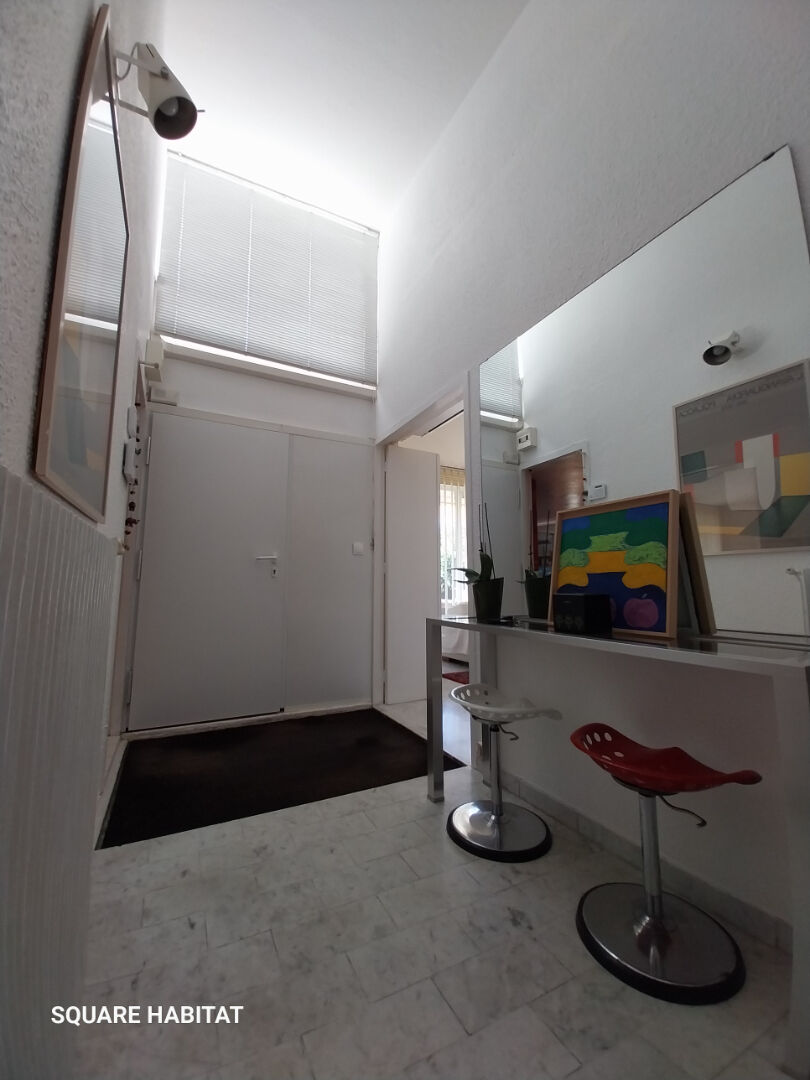Une entrée remarquée par sa porte à double battant et sa large fenêtre zénithale, inondant de clarté le hall et les pièces adjacentes.